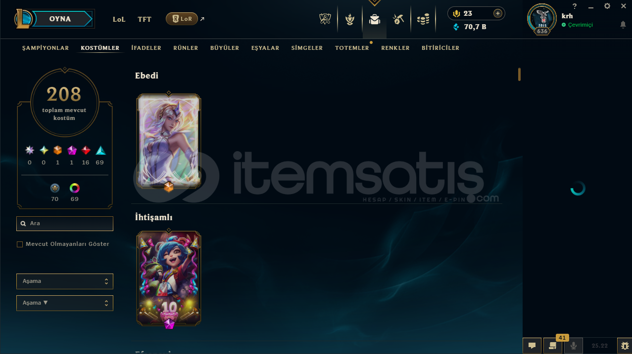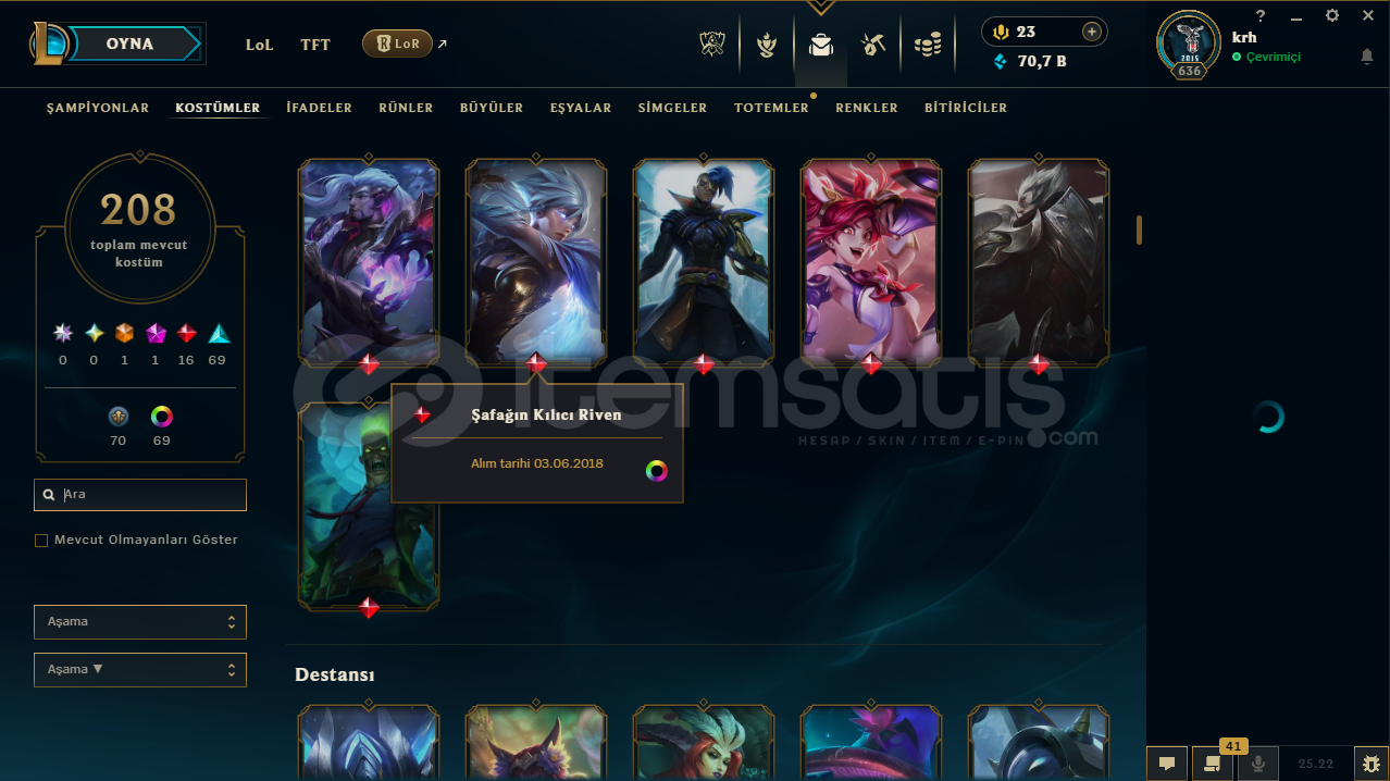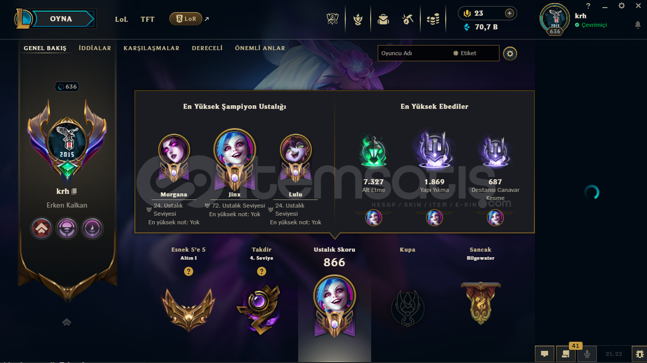 Hesap oldukça dolu, hayat boyunca geri çekilme durumu yaşanmaz. VALORANT tarafında fatih seti vs. var. K/D'si yüksek.