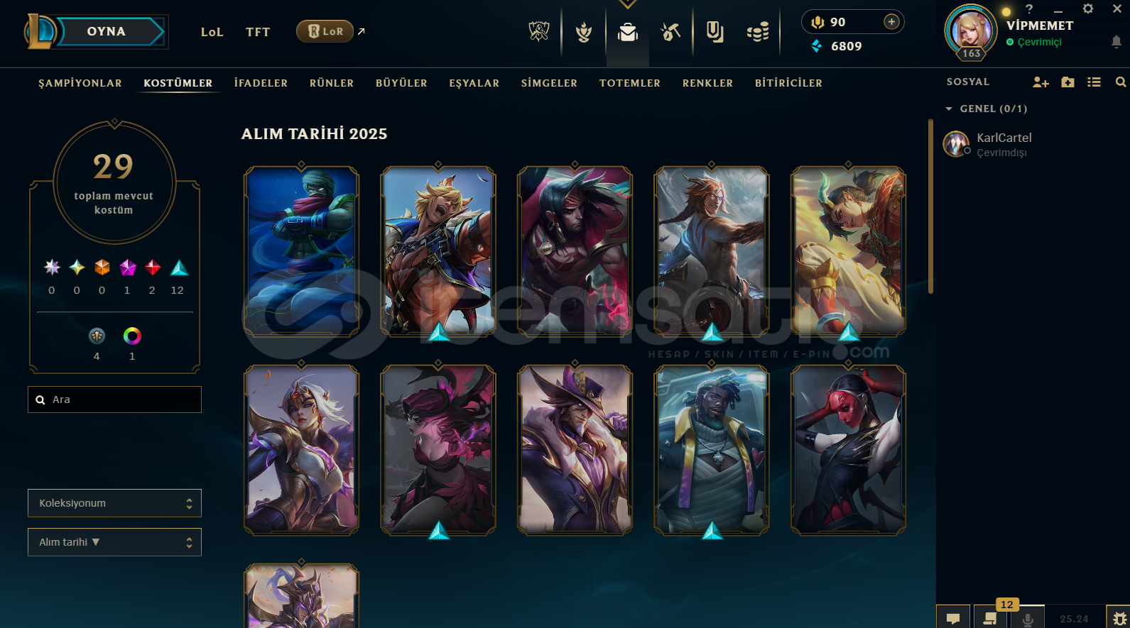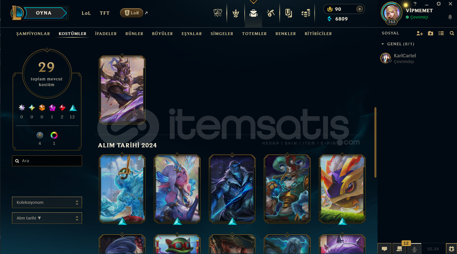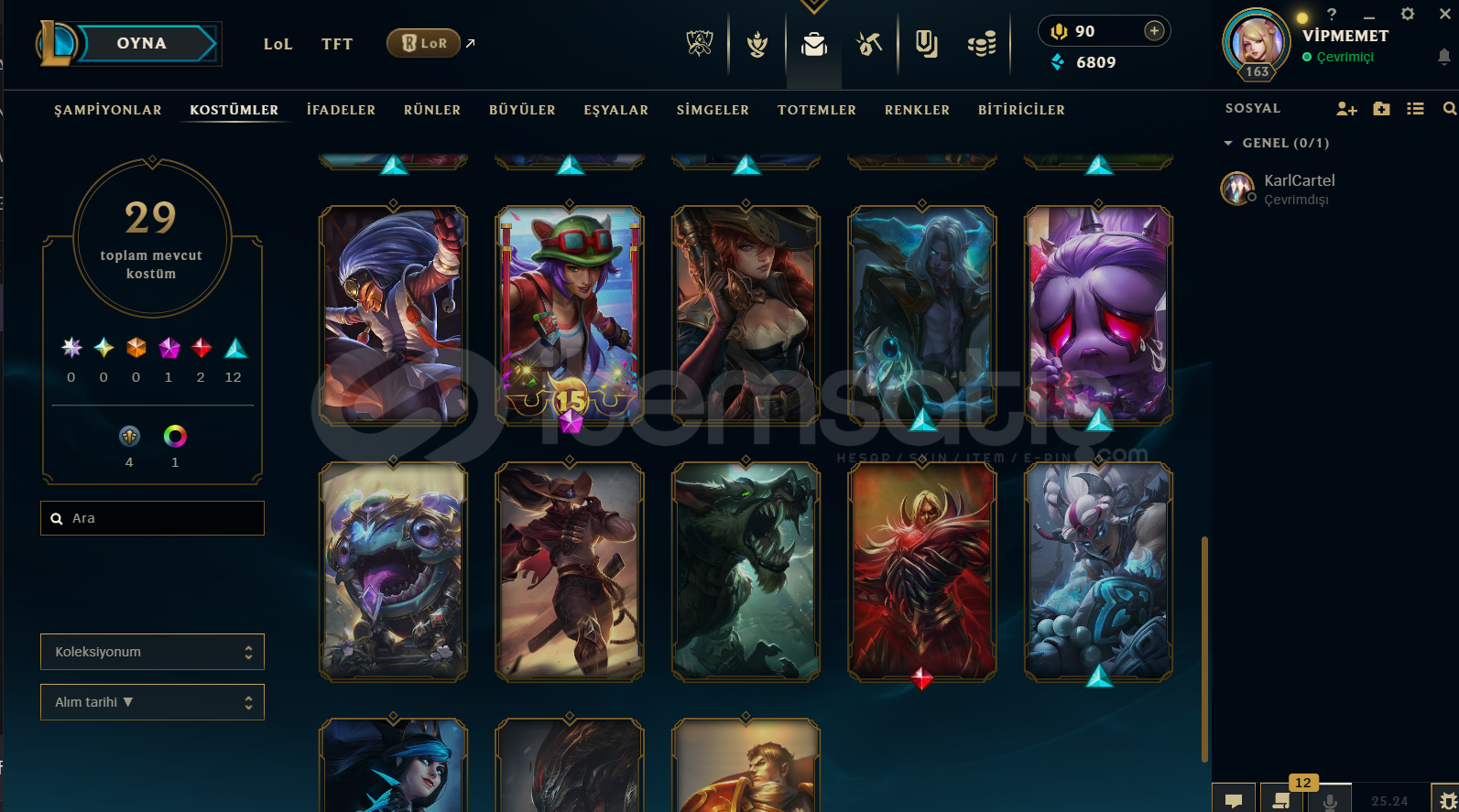 HESAPTA 29 SKİN MEVCUT. HESAP SEVİYESİ 163 LEVEL. HESAP TURKEY SUNUCU. HESAPTA BAN VB HİÇBİR SORUN YOKTUR. HESAP SATIN ALDIKTAN SONRA MAİL-ŞİFRE-TELEFON DEĞİŞTİREBİLİRSİNİZ. HESAPTA 110 HERO MEVCUT. Ayrıntı için dm