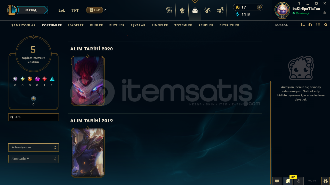efsane hesap 5 köstüm var yuce yumruk leesin var