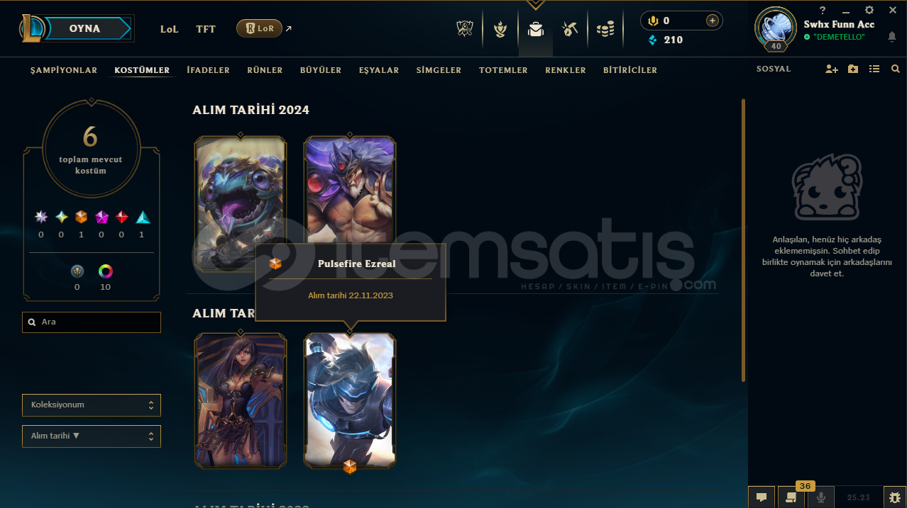 pulsefire ezreal kostüm var isim degişme hakkı var ➤DAHA FAZLA LEAGUE OF LEGENDS HESAPLARI İÇİN PROFİLİMİ ZİYARET EDİNİZ.