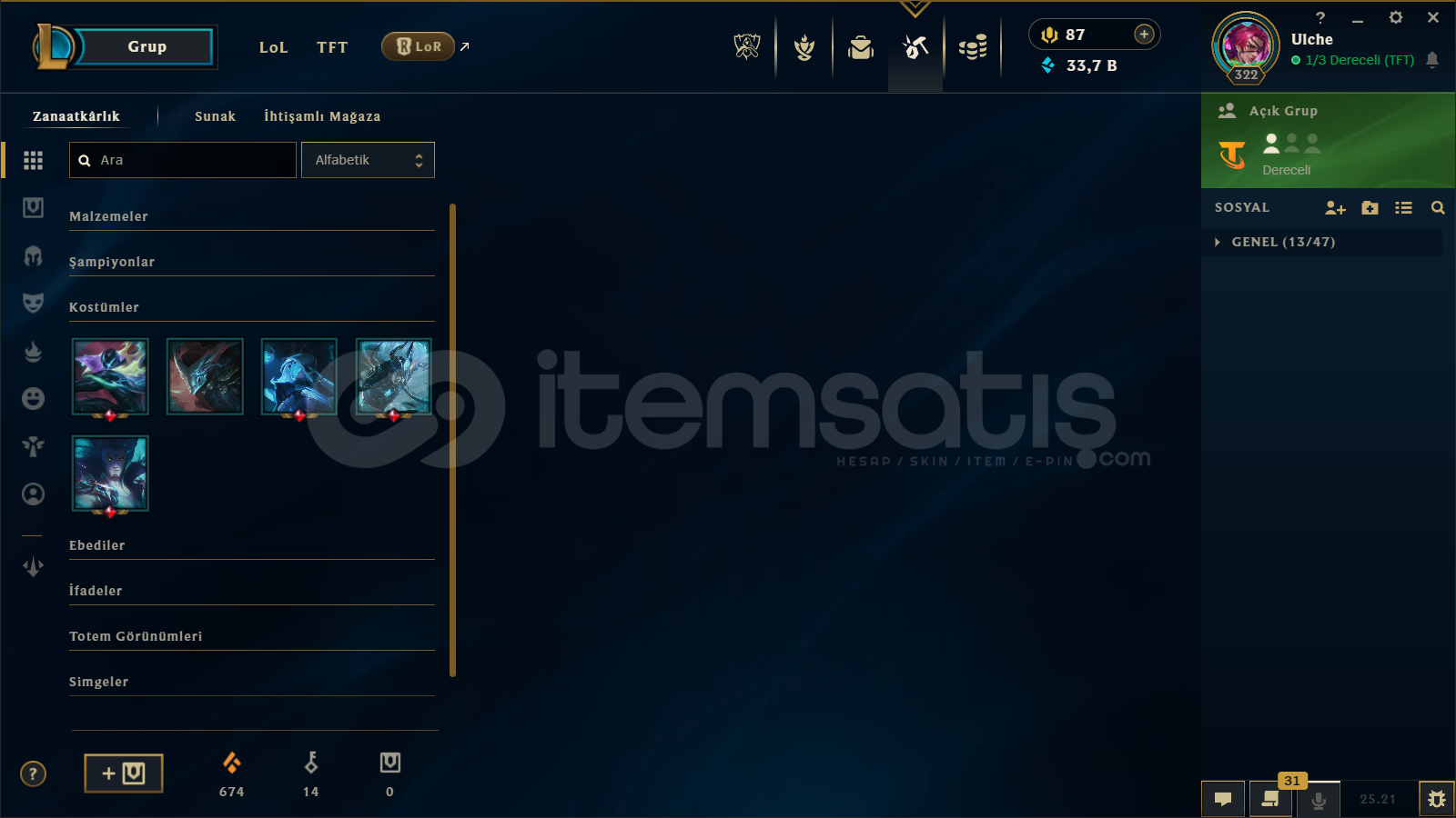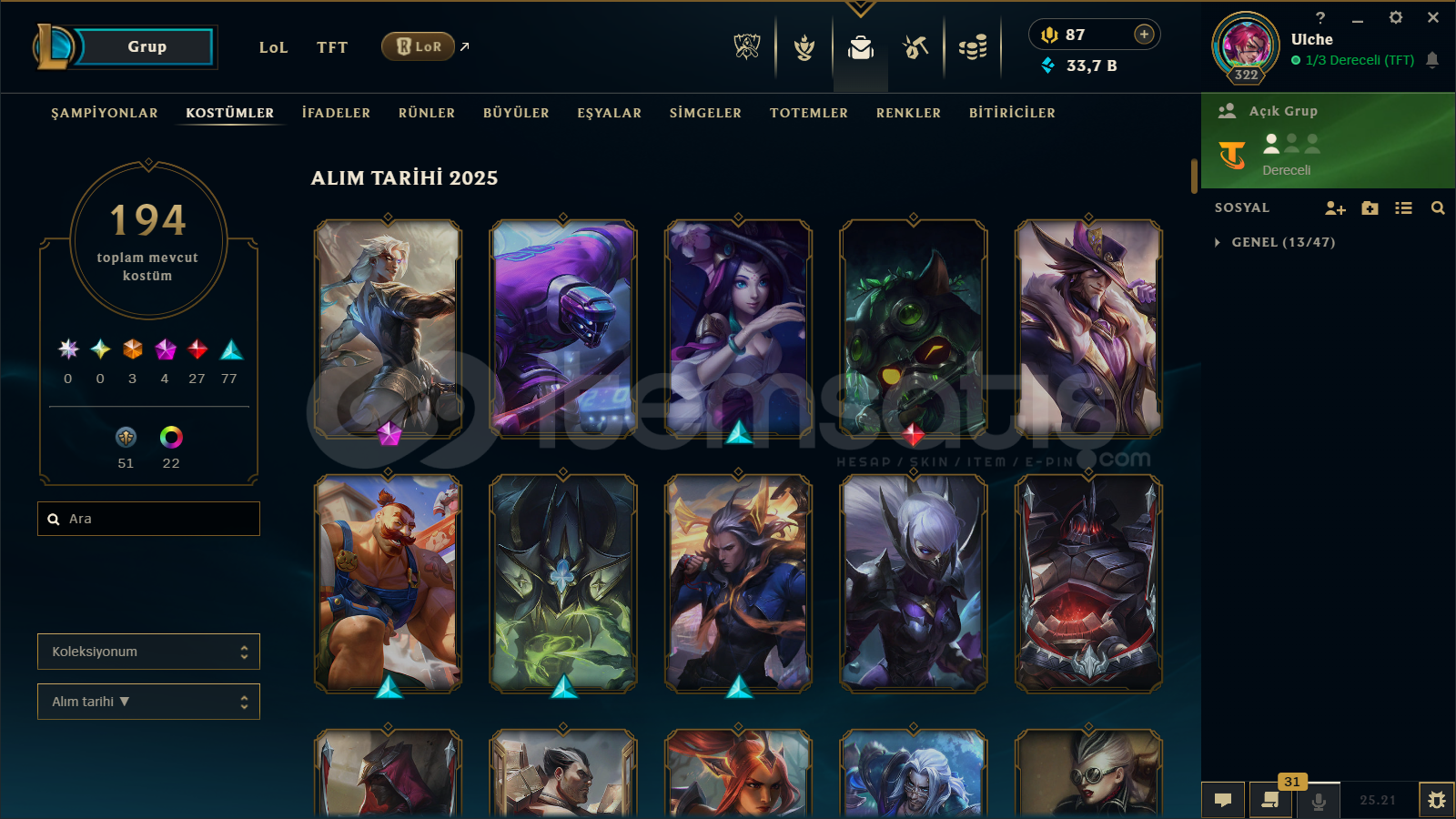 Hesabın tüm bilgileri değişecektir.hesapta 200 e yakın kostum bulunmaktadır.Kayn mainlik hesaptır 2 kostüm dışında tüm kayn kostumleri vardır.4 ihtişamlı kostum.peak plat 1.tüm şampiyonlar açıktır.tft hesabıda çok kasılmıştır.hesap direk olarak üstünüze devredilecektir maili telefonu her şeyi değişecektir.hesabı kendim kastı...