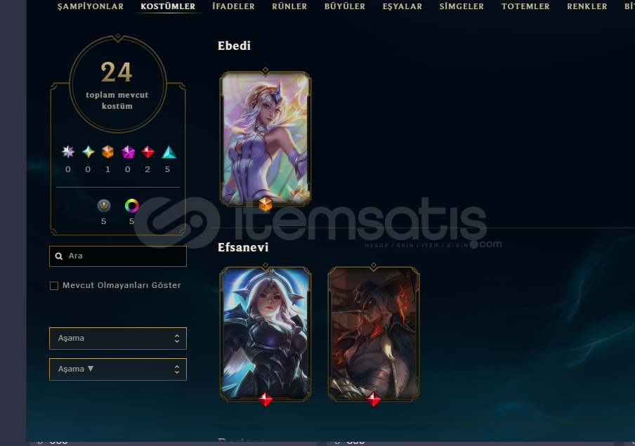 24 KOSTÜM79 SEVİYE77 KARAKTER VAR65 RP varTekçift altın 3