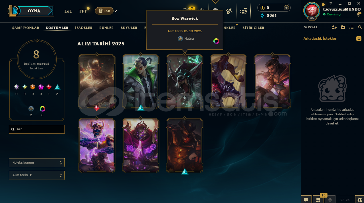E POSTA DEĞİŞEN 8 KOSTUM VAR 1 EFSANEVİ : YÜCE YUMRUK LEE SİN 2 DESTANSI : KOZONAVA MASTER Yİ VAHŞİ BATILI DAİRUS HESABIN WR YÜKSEK +22 LP VERİYOR