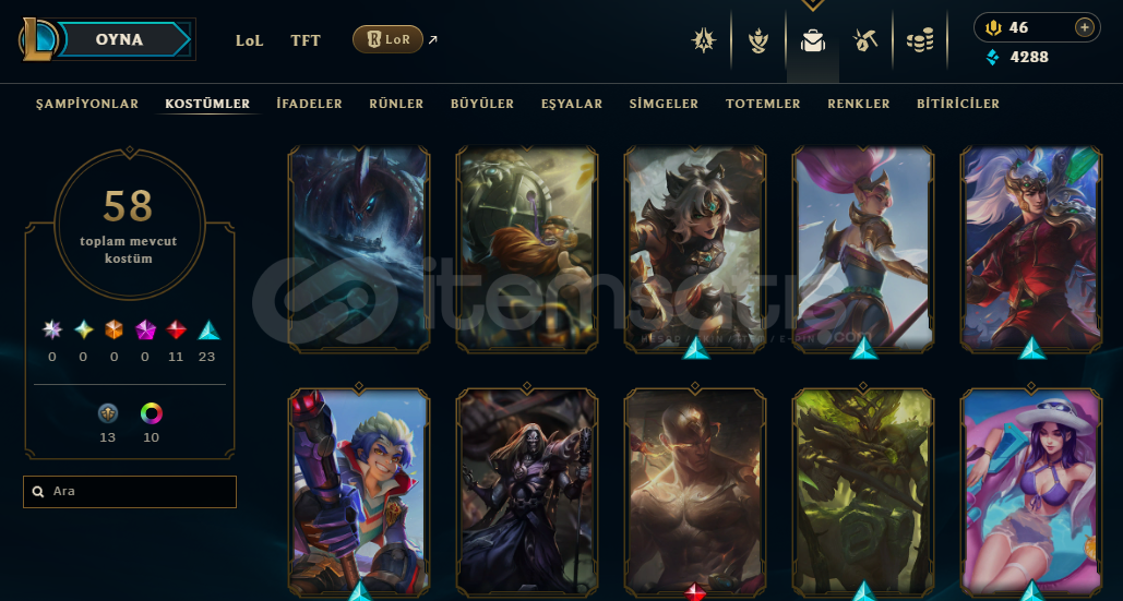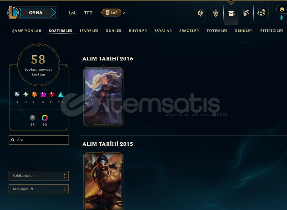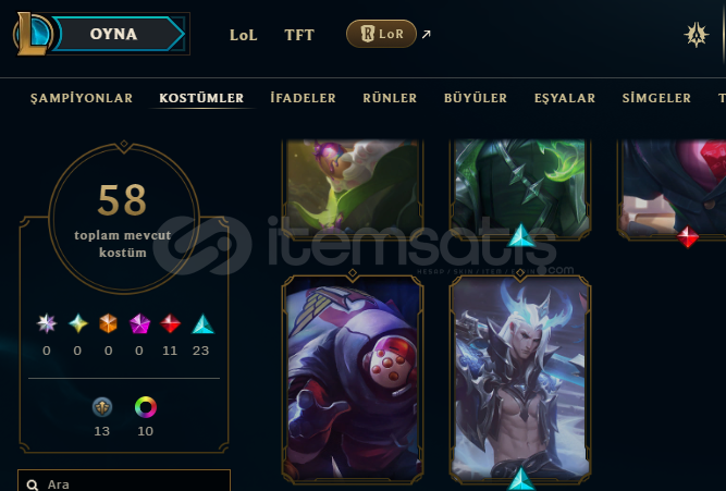 58 skin güzel skinleri olan 400 win bronz hesap içinde azda olsa rp var maili kendi mailinize devredicez bilgileri istediniz gibi değiştirebilirsiniz