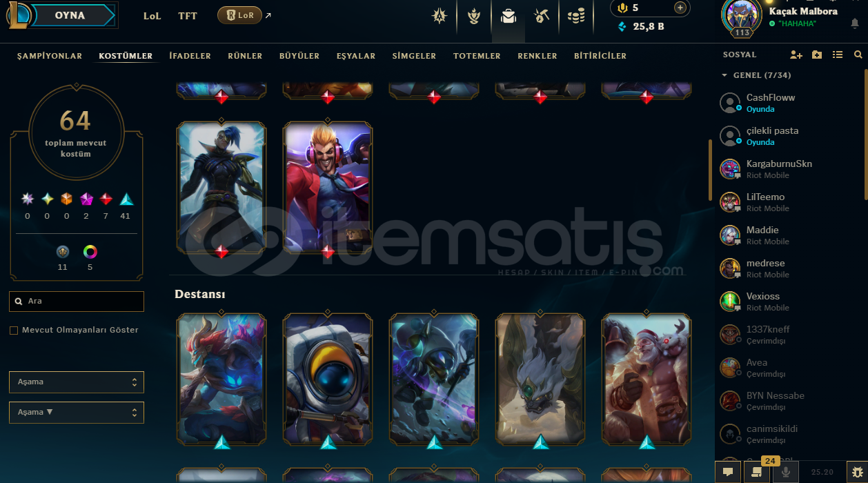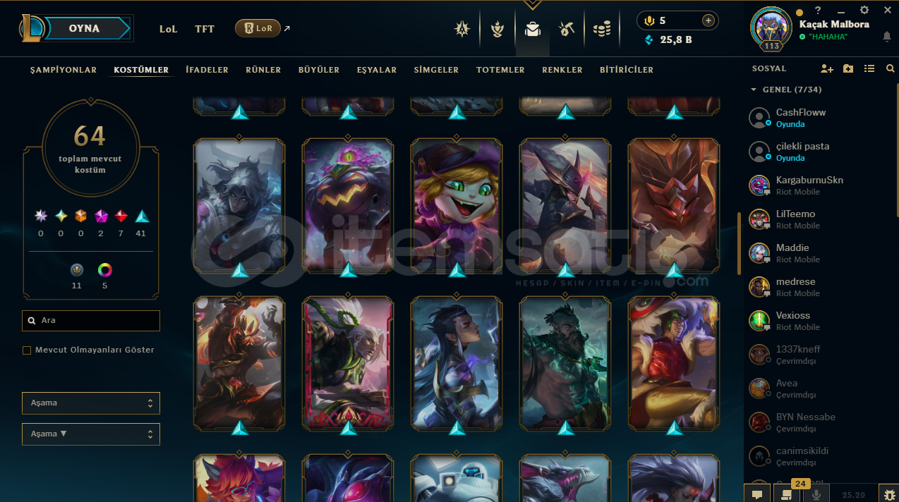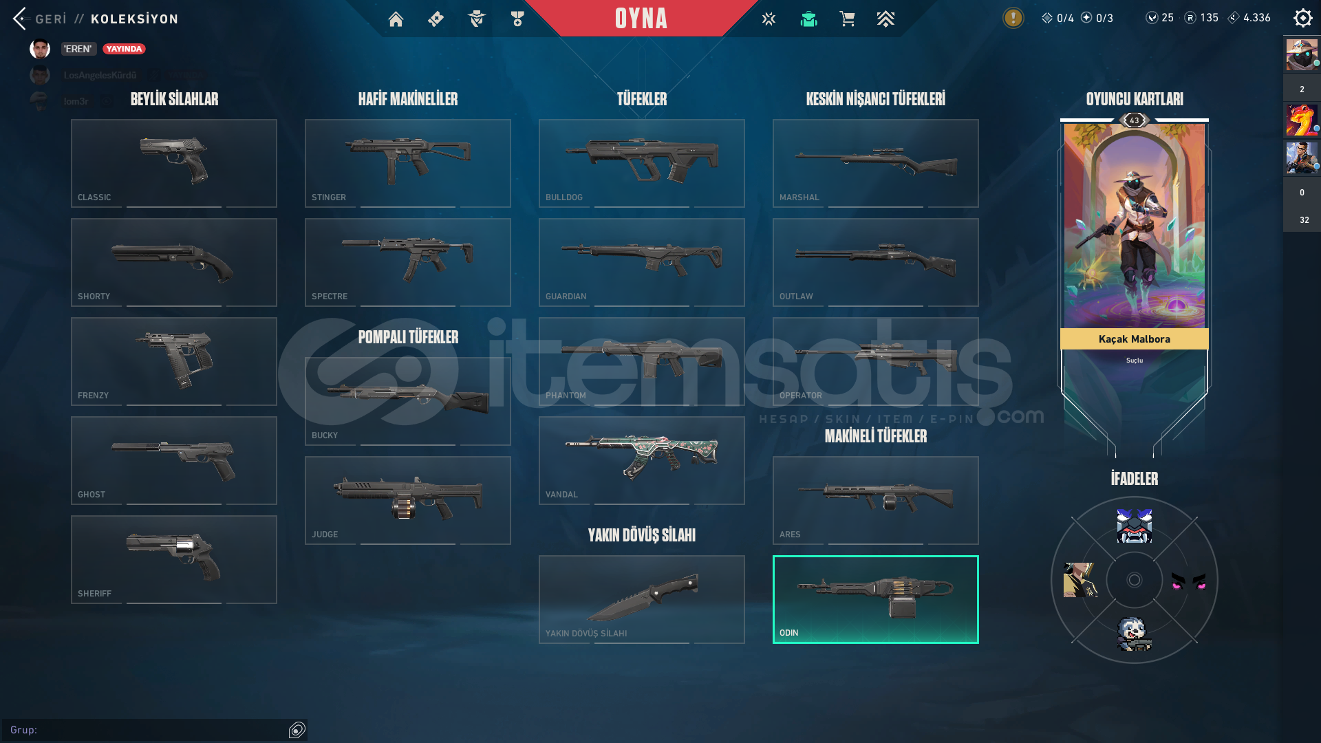 içinde 64 skin mevcut takdir seviyesi 4 mainlik hesap alıcısına hayırlı olsun valorantdada oni vandal mevcut