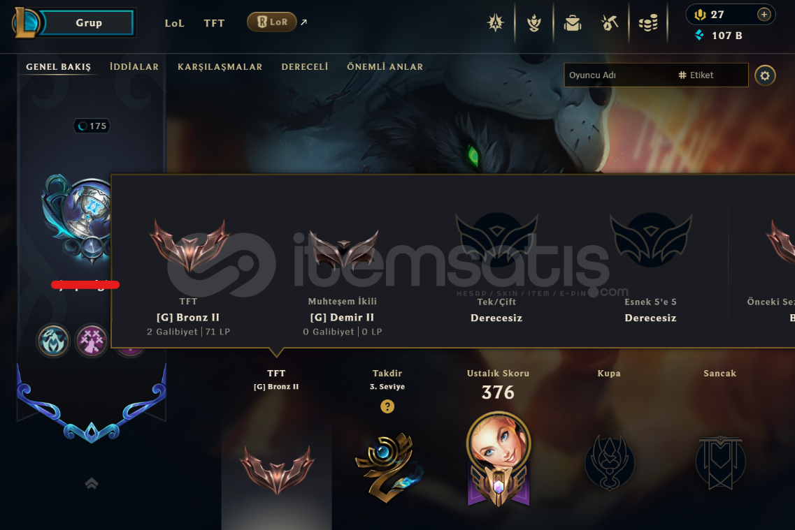 Bölge: EUWRank: UnrankedTeslimat: E-posta deviriSatış GüvencesiBu hesap, itemsatis.com platform kurallarına tam uyumla satılmaktadır ve platformun mesajlaşma sistemi üzerinden hızlı ve güvenli bir şekilde teslim edilecektir. Hesap, teslim anında herhangi bir yasak, kısıtlama veya çekilme durumu olmaksızın temiz bir durumdadır. Lütfen dikkat: Hesap, teslim edildiği haliyle sat...