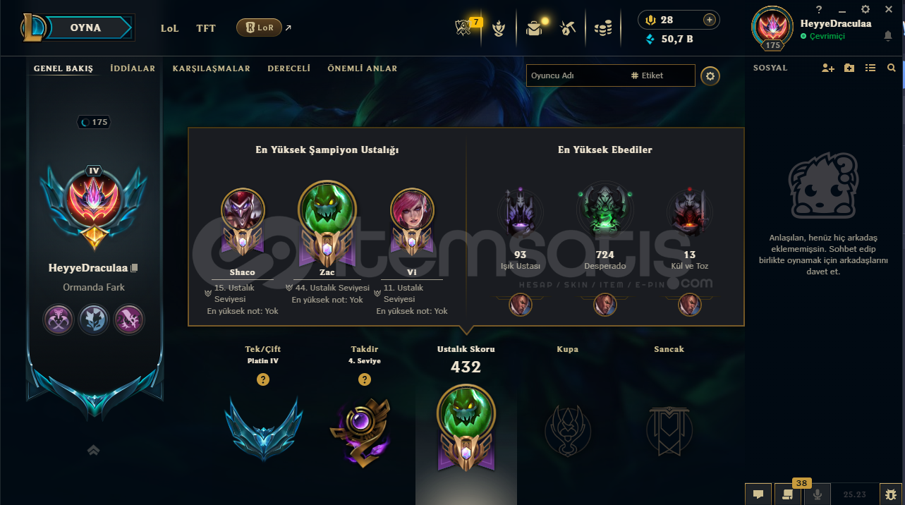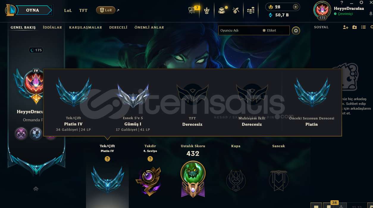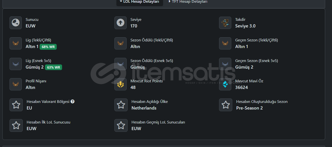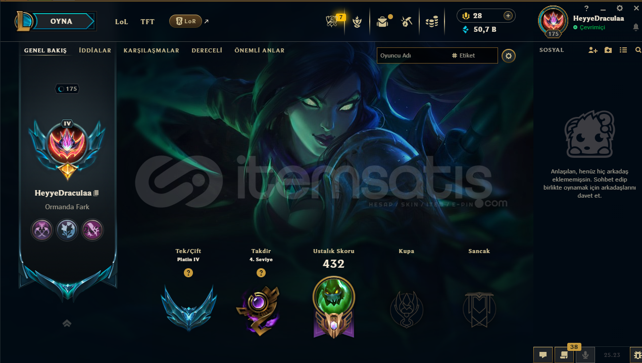 EUW PLAT4 LOL Hesabı 172 Şampiyon 154 Kostüm