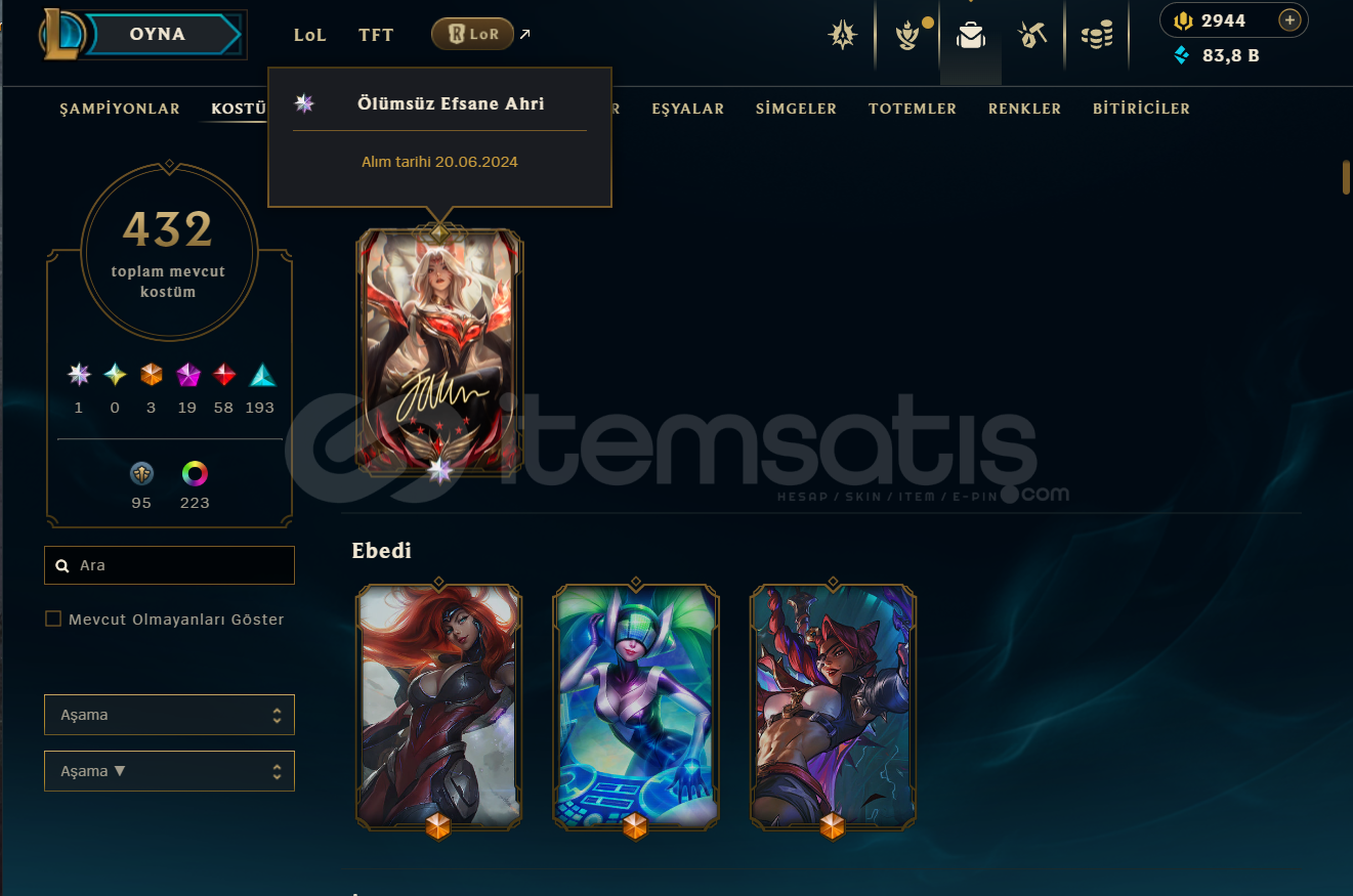 FAKER AHRİSİ BOL PRESTİJ 432 KOSTÜM 800LVL