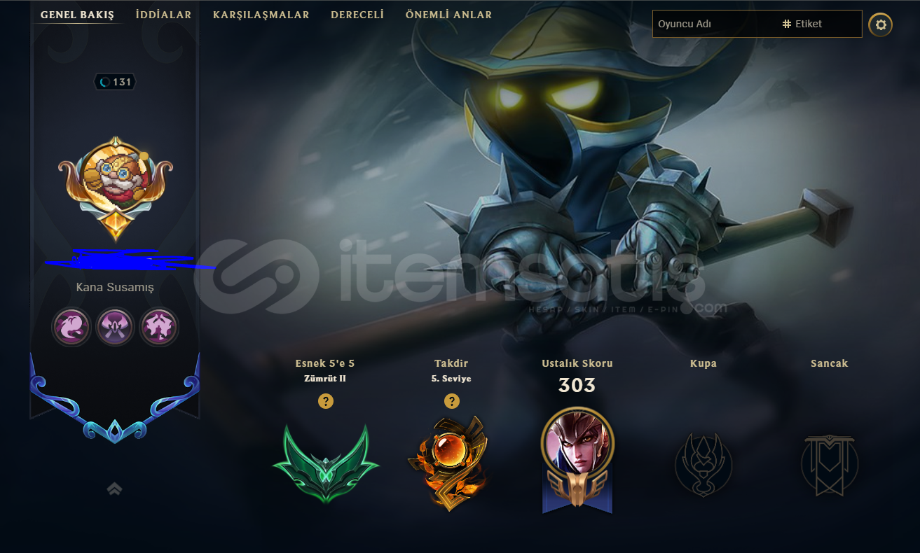 hesapta 5 senedir ranked atılmıyor bu sezon ilk defa esnekleri oynandı 50 maç 40 win zümrüt 2 38 lp geliyo 15 lp gidiyohesaptaki kostümler zaten göz önünde güzel kostümlertakdir seviyesi 5 hiç ban yemeditertemiz hesappazarlık payı vardıralana hayırlı olsun