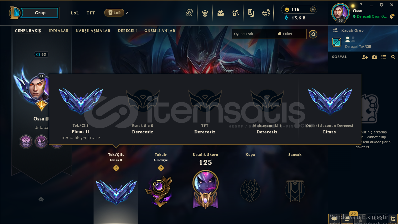 not hesapta maç atılmıstır ekstra win alınıp güncel diamond 2 dir