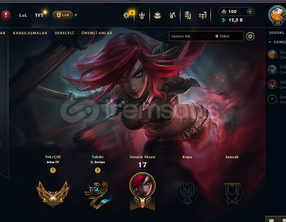 İcinde 12k öz 31 şampiyon var 7 win 3 losesi var 38 gelip 12 gidiyor hızlıca rank kasabilirsiniz
