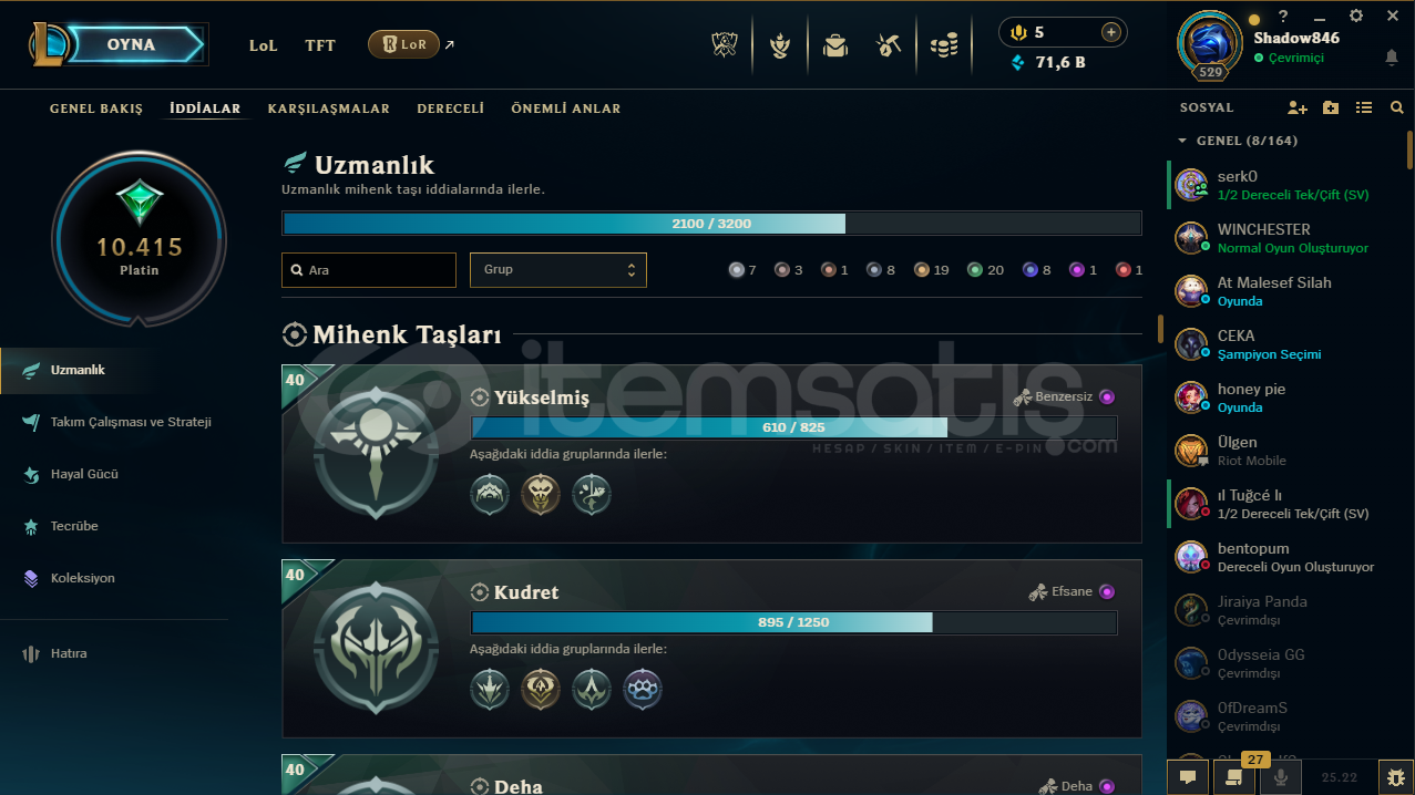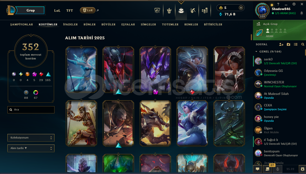 GOLD 2 ESNEK GOLD 4 TEK ÇİFT 352 KOSTÜM MEVCUT 71K MAVİ ÖZ VAR HESAP İÇİNDE E POSTA NUMARA DEĞİŞİYOR.4 EBEDİ KOSTÜM 5 İHTİŞAMLI KOSTÜM 29 EFSANEVİ 165 DESTANSI KOSTÜM 88 HATIRA KOSTÜM BULUNUYOR PAZARLIK PAYI VARDIR.