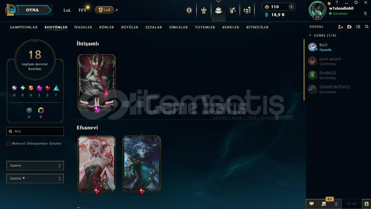 İhtişamlı kostümler:Prestij düşmüşlerin kehaneti J4Efsanevi kostümler:Efsanebaz ireliaKışın seçilmişi DianaDestansı Kostümler:True damage akakiVahşi batılı ireliaMistik jhinMistik LuluŞeker hırsızı ekkoRuh çiçeği TeemoKışın seçilmişi hecarimHatıra kostümler :Boz WarwickDeşergeçer akaliMundo vücut şampiyo...