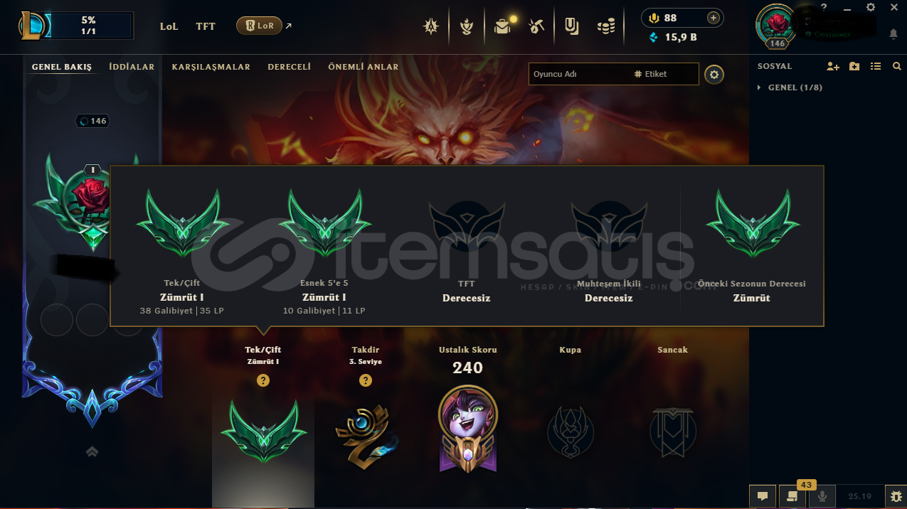 HESAP Zümrüt 1 Kostümler (76)Şampiyonlar (161)15 K MAVİ ÖZ VAR Fiyatta herhangi bir pazarlık yapamam zaten verebiliceğim en son fiyata koydumHesabın İlk SahibiyimAlıcısına şimdiden hayırlı olsun