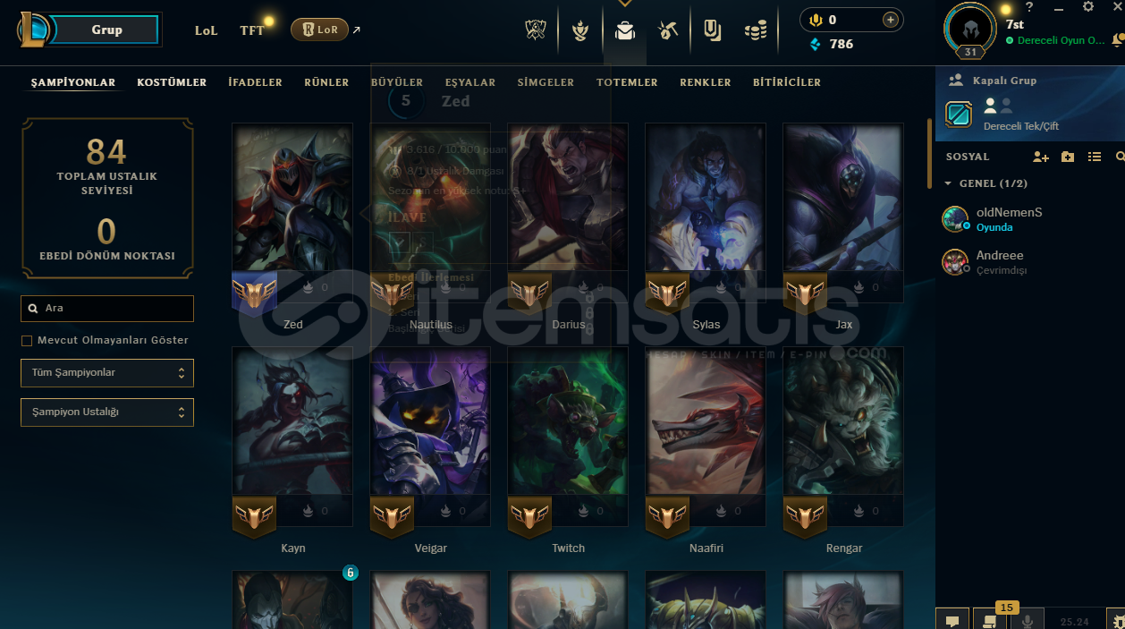 MMR YÜKSEK +40 VERİYO -12 VERİYO META ŞAMPİYONLAR AÇIK BAYA 70 ŞAMPİYON VAR