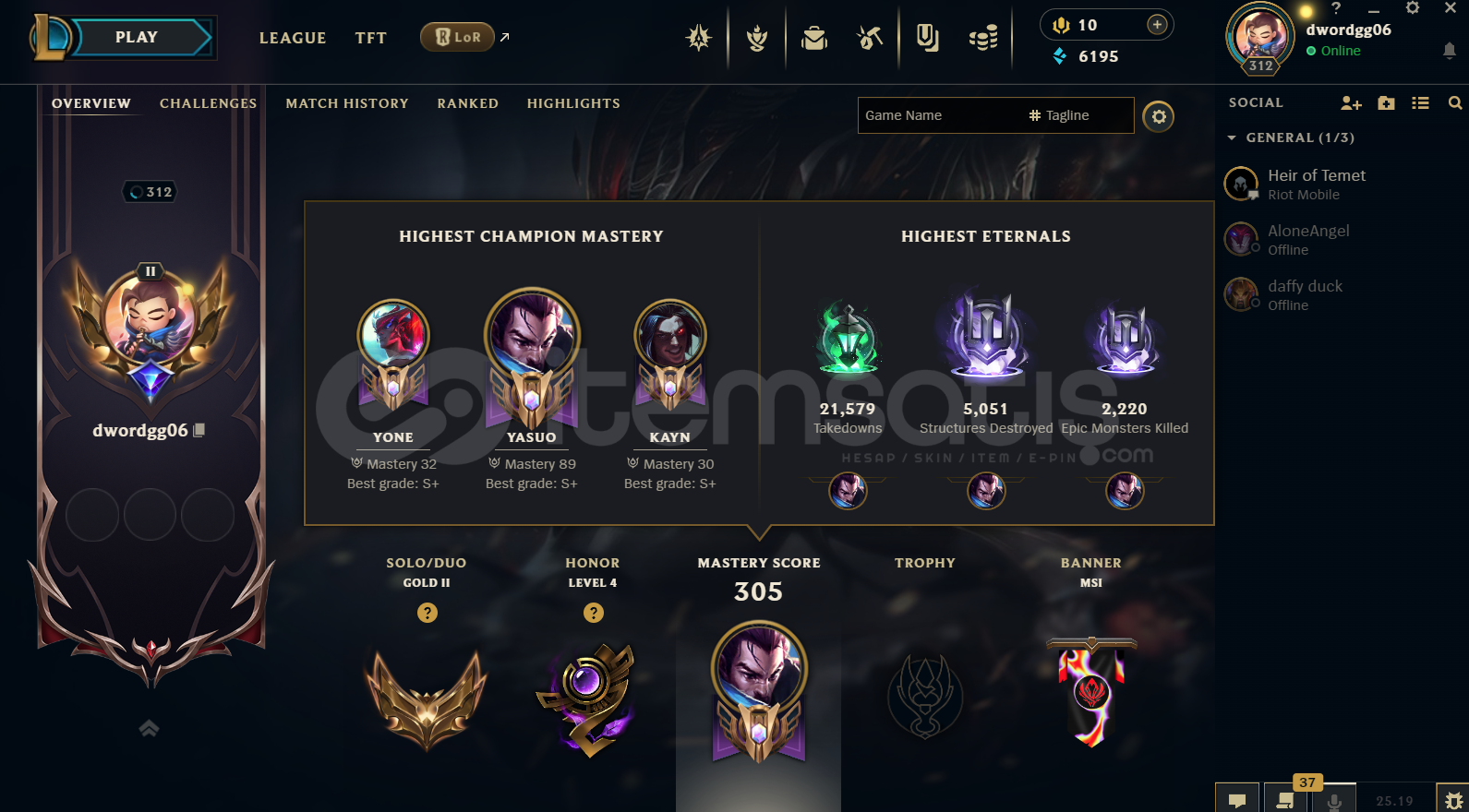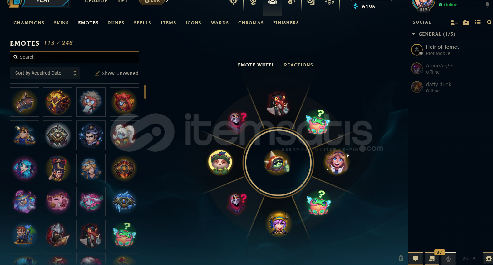 hesabın değerini bilmiyorum dmden fiyat yazarsanız anlaşabiliriz hesap 312 seviye 3 4 yıl oldu açalı bol skinli bi hesap mid jg main 1.4m yasuo 300 400k yone 250k kayn falan var yasuonun çoğu kostümü var gecenin kılıcı vahşi batılı kanlı ay gölge dövmeli uzay serüveni bide gecenin kılıcının 2. rengi var kaynda güzel skinleri var uzay serüveni ruh avcıs&#...