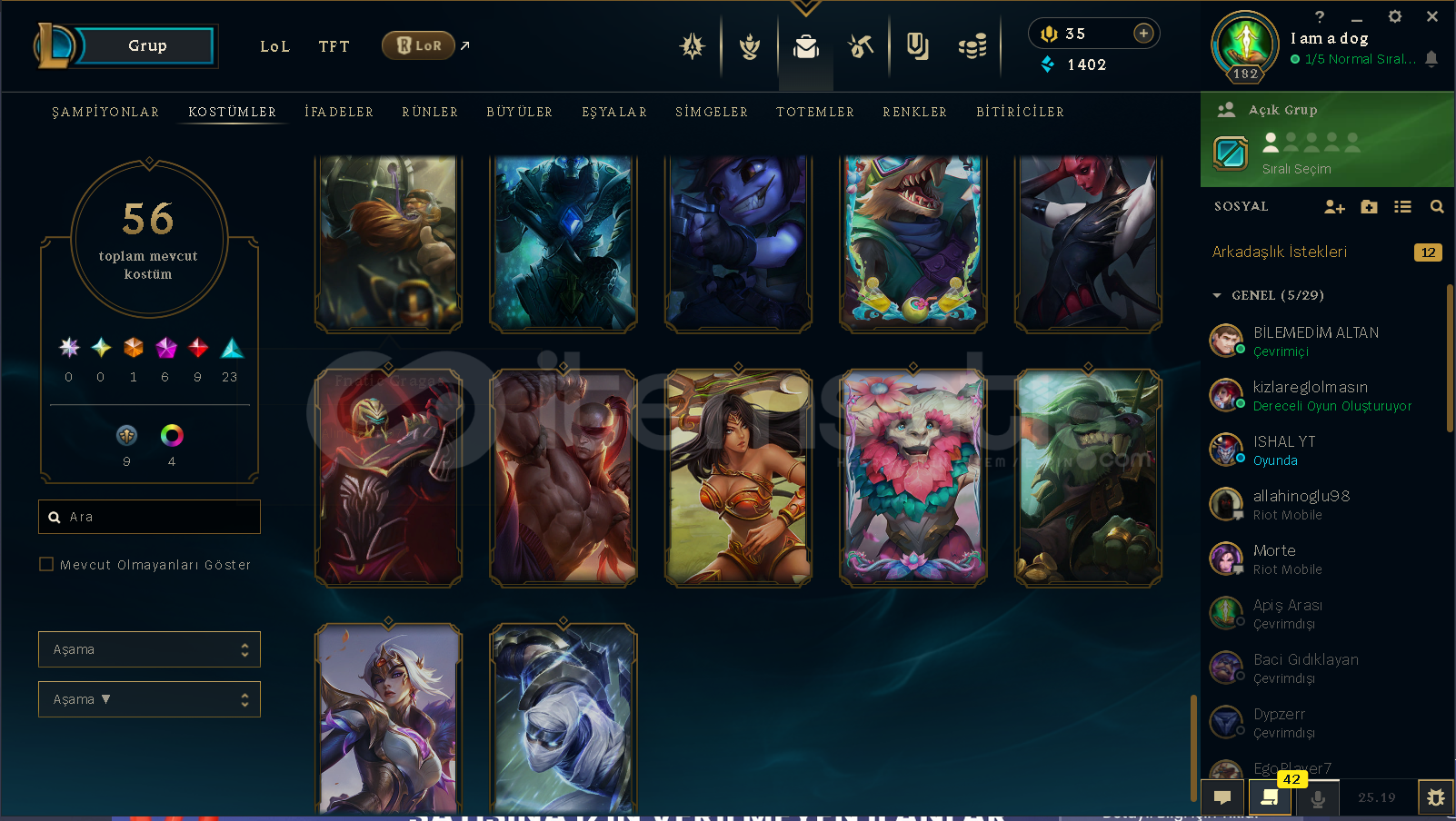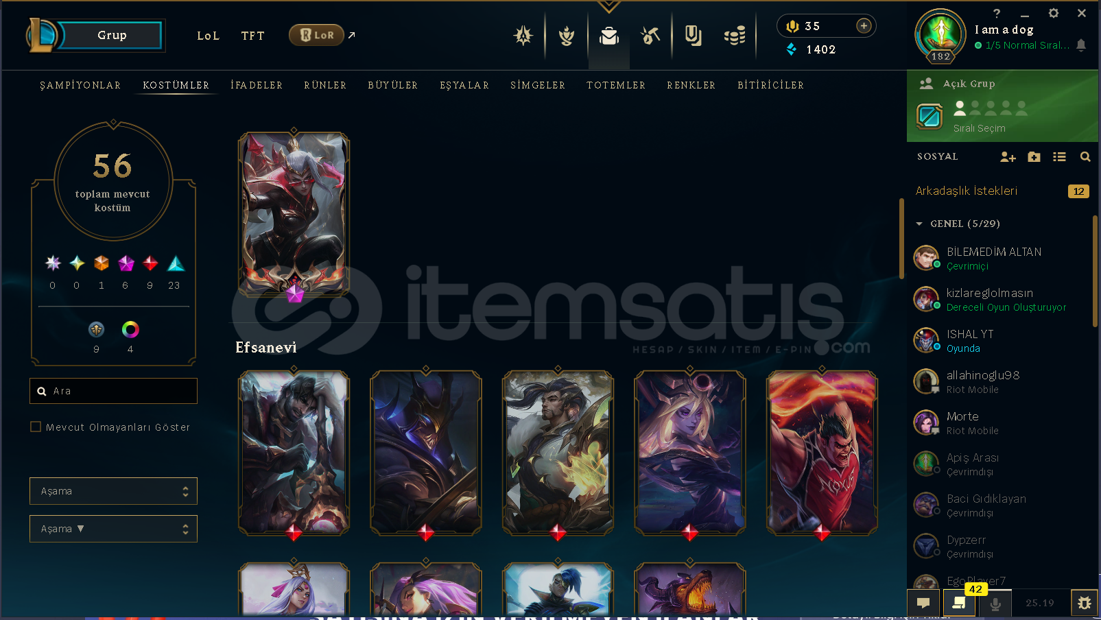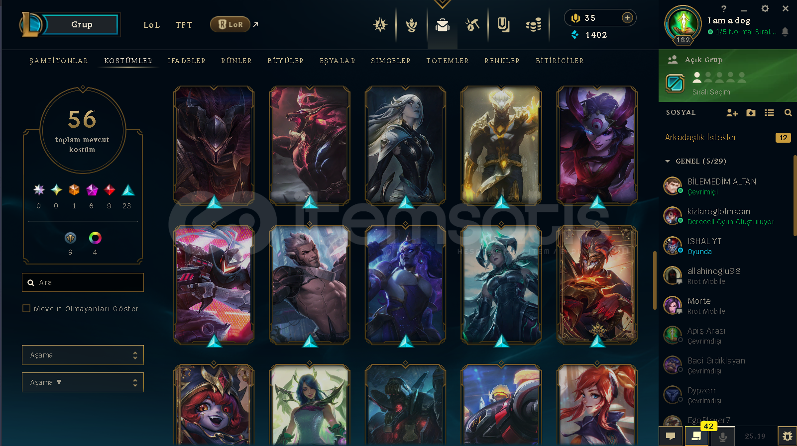 HESAP DETAYLARISKİN SAYISI : 57HERO SAYISI : 161LEVEL : 182RANK : SİLVER 2SERVER : TRDEĞERLİ KOSTÜMLER :EbediPulsefire EzrealİhtişamlıPrestij Düşmüş Kral Jarvan IVPrestij Kanlı Ay AatroxPrestij Ruh Çiçeği LuxPrestij Ruh Çiçeği Master YiSiveemoYükselen Efsane VayneEfsaneviArcane: Felaketzade JayceGalaksi Katili ZedHakikat Ejderi YasuoKozmik Karanlık LuxPotanın Kralı DariusRuh...