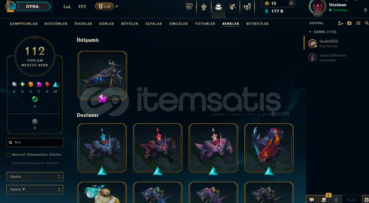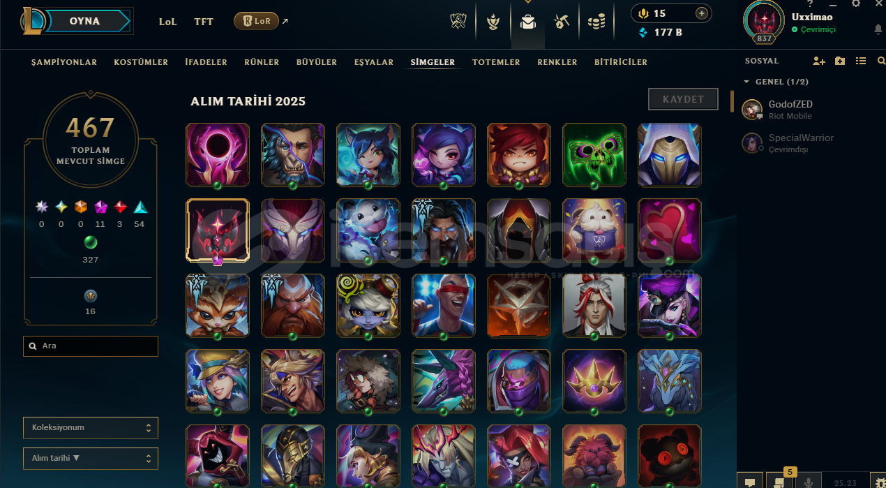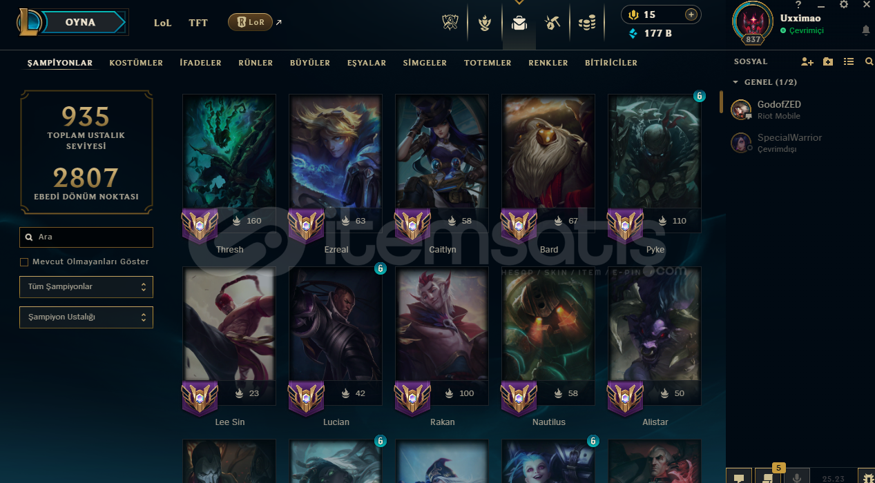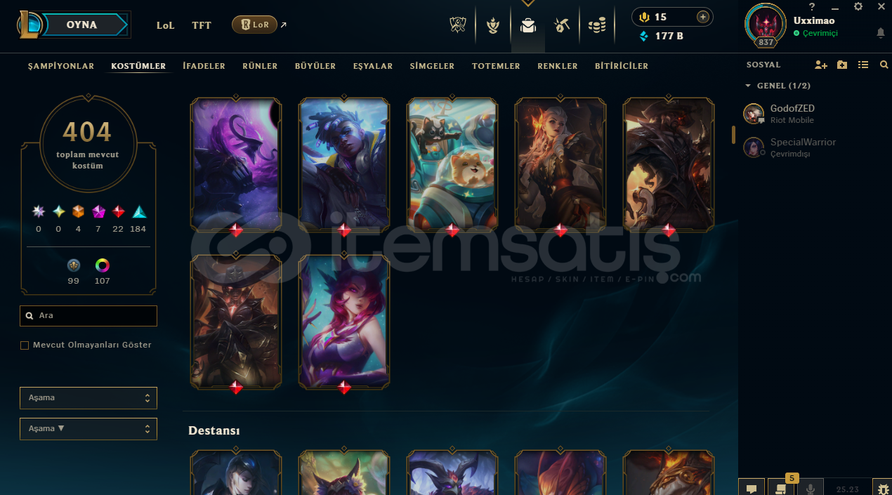 405 KOSTÜMLÜ 837 SEVİYE 180K ÖZ HESABIM SATILIK İLAN KOYDUKTAN SONRA ARCANE VİKTOR ÇIKTITÜM ŞAMPİYONLAR AÇIKTIRÇOK EMEK VE PARA HARCANMIŞTIRDEĞERİNİN ALTINA SATILIK PARA İHTİYACINDANMAİL DEĞİŞİCEK İKİ FAKTÖRLÜ DOĞRULAMA RİOT DOĞRULAMA GOOGLE DOĞRULAMA AKTİF HEPSİ ÇIKILIP ALICININ DOĞRULMASINI KENDİ YAPICAK...