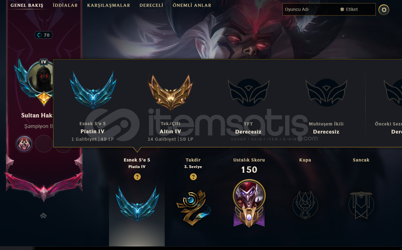 ⭐ Köken Gecenin kılıcı yasuo 70 Lvl Hesap