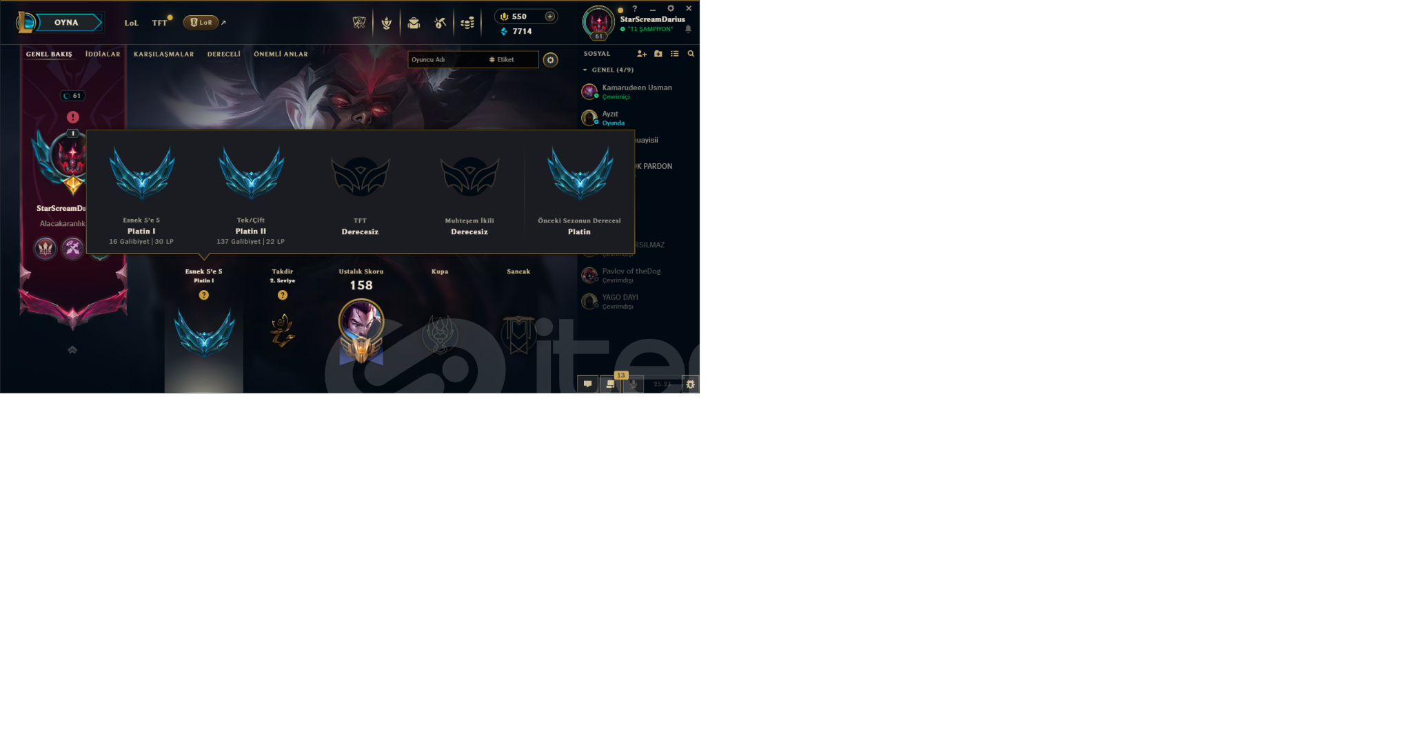 6 Aydır oynadığım hesap askere gideceğim için satıyorumİÇİNDE YENİ GELEN DARİUS SKİNİ VARDIR PAKETİ İLE ALINMIŞTIR ÇERÇEVE VE RENK MEVCUTTUR