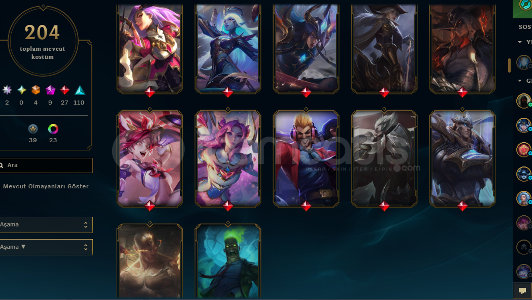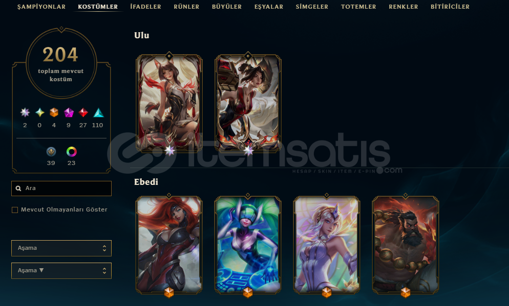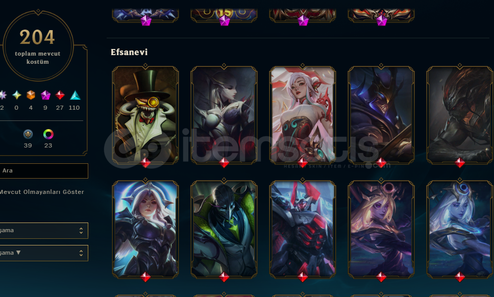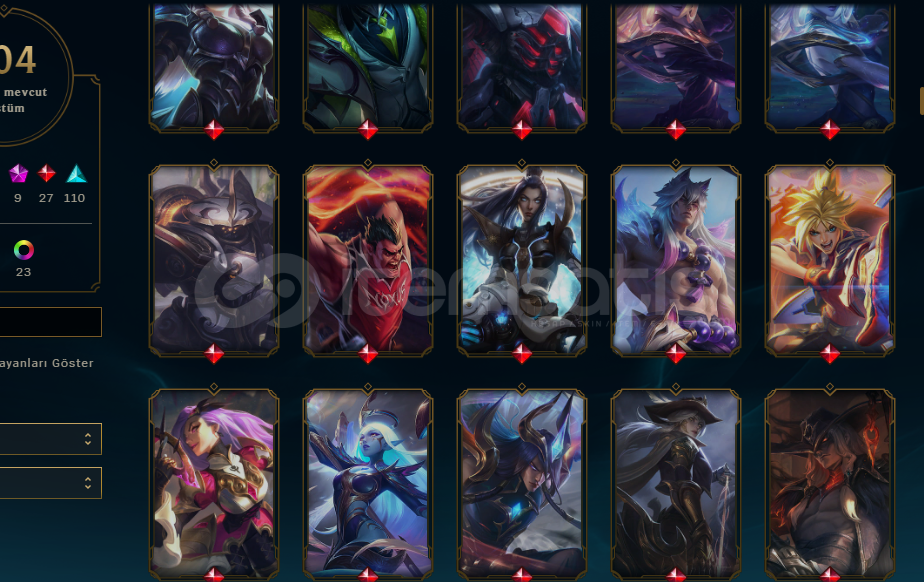 • Şampiyon Sayısı: neredeyse full 15 20 tane eksik (neredeyse full koleksiyon)