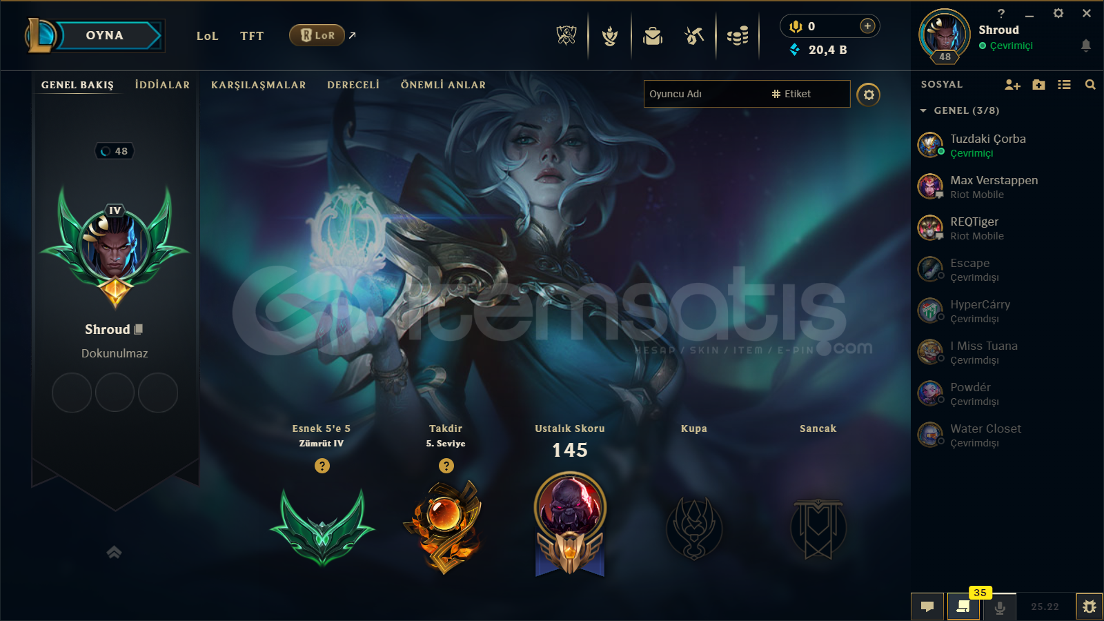 78 şampiyon10 kostümzümrüt hesap5.taktir seviyesi20k mavi öz içermekte