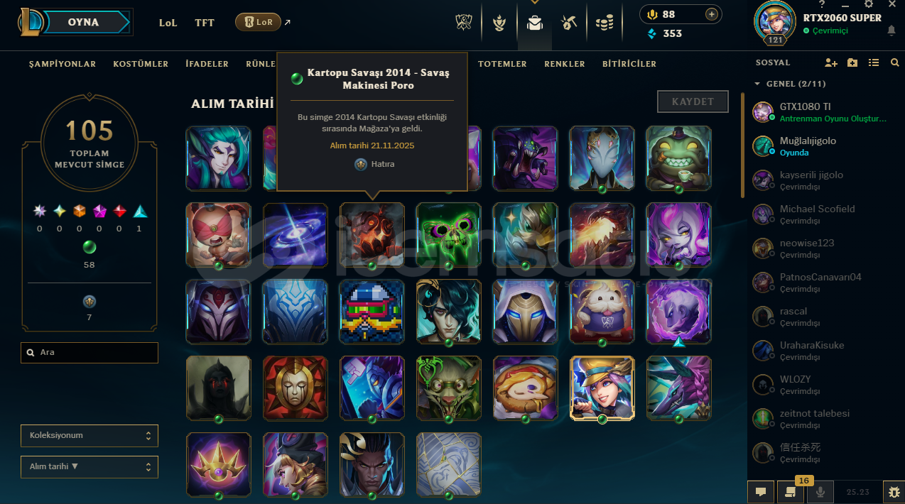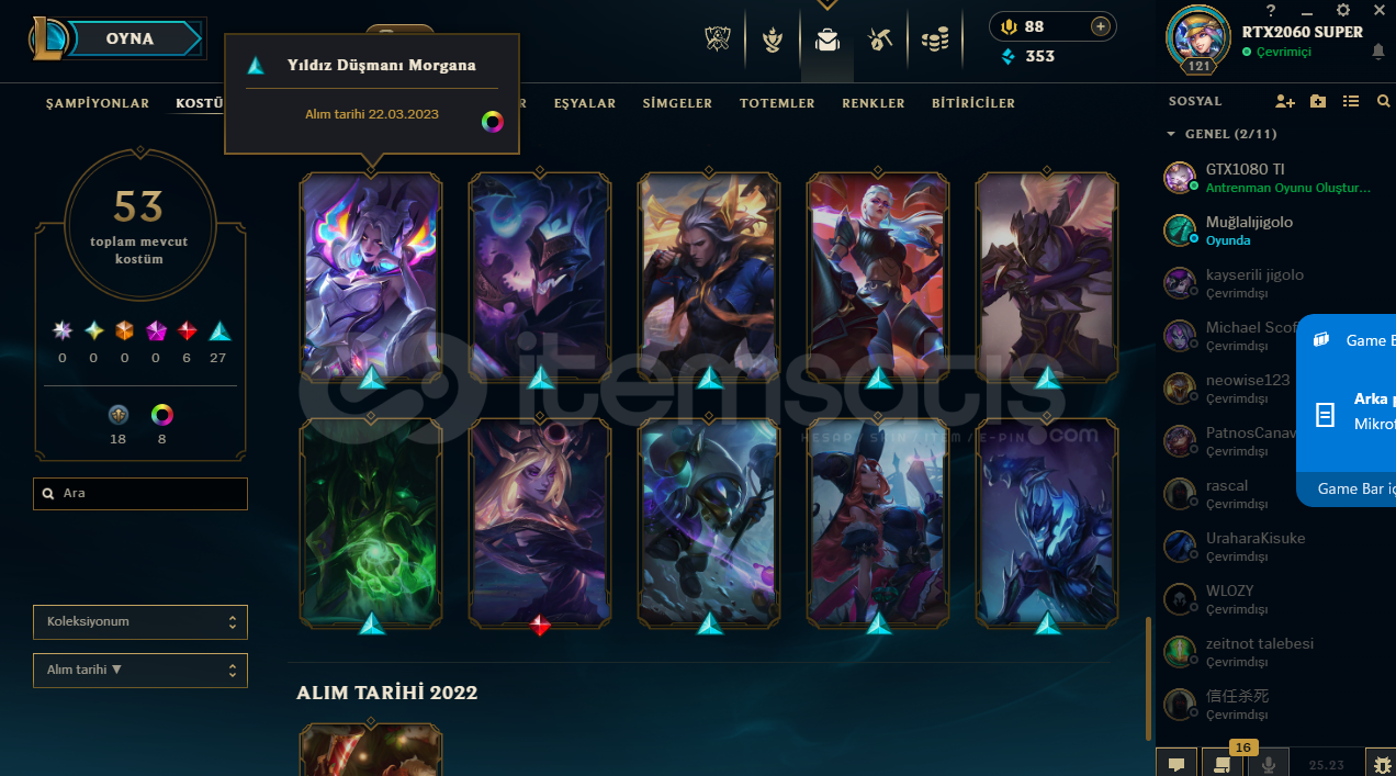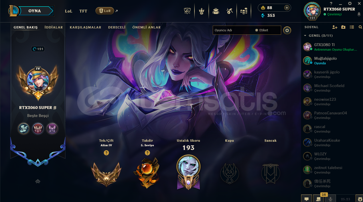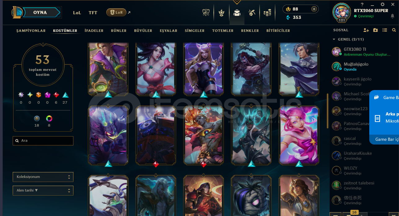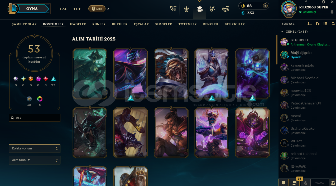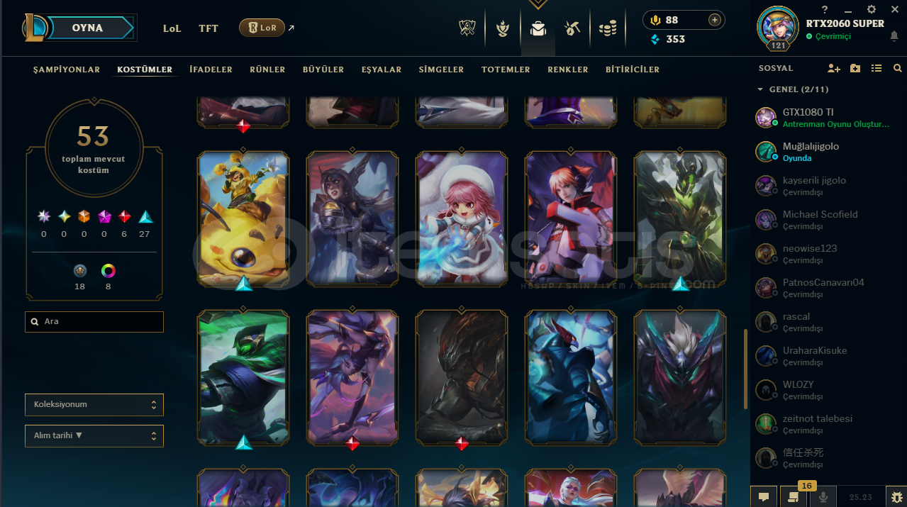 League of legends 121 seviye bol skinlibol skinli bir sürü kostum vrdır totemde vardırsimgede mail değişimi yapılck