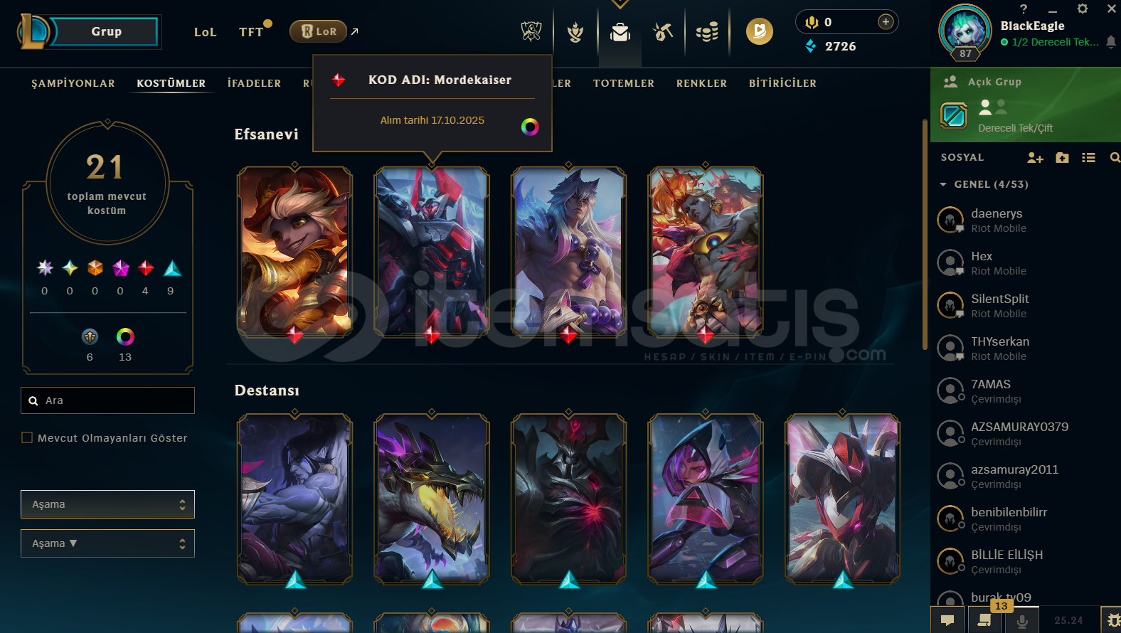 21 kostüm mevcuttur10 seviye yone12 seviye Tahm KenchRuh dövüşcüsü ViegoRuh çiçeği settKod Adı MordecaiserSkt T1 yone imzalı