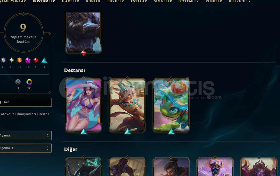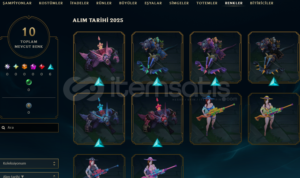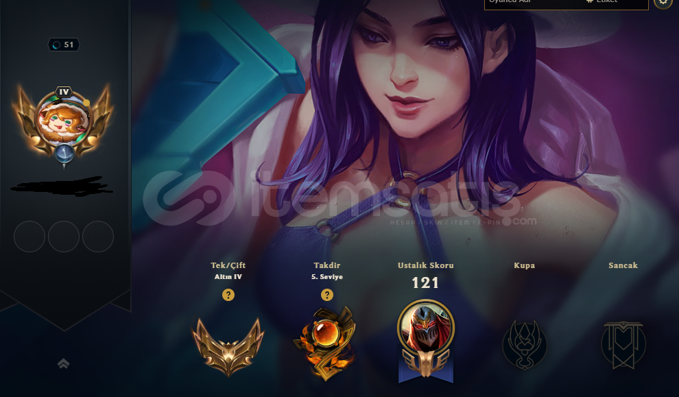 Gold 4 hesap10 adet kostüm10 adet renk4 adet havuz partisi caitlyn rengitakdir seviyesi 5