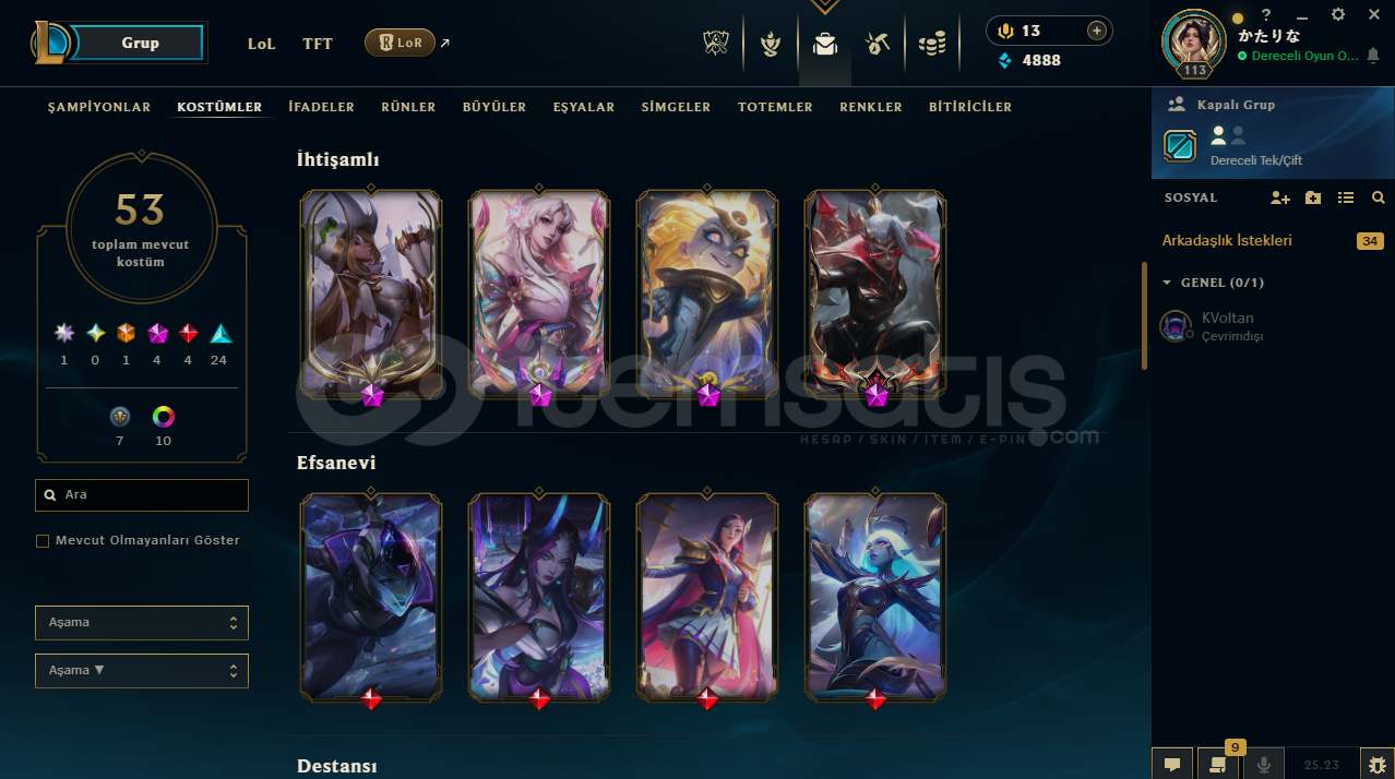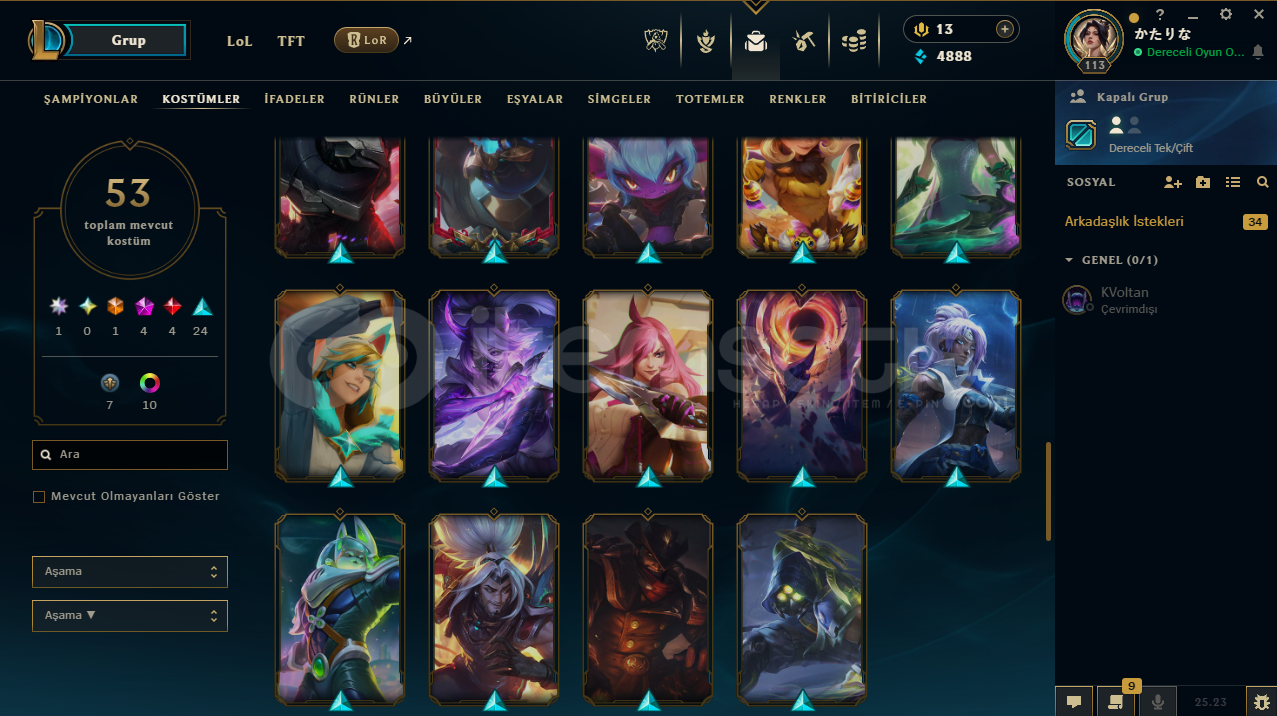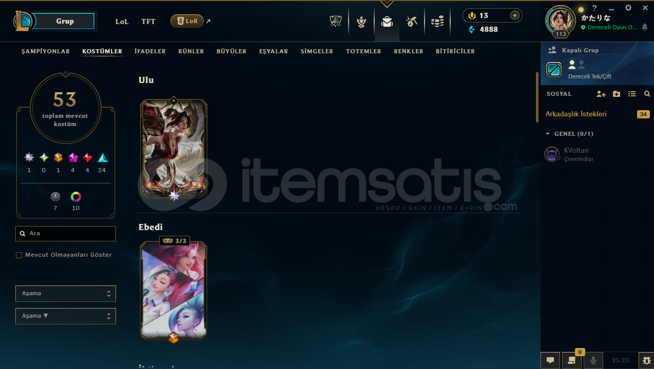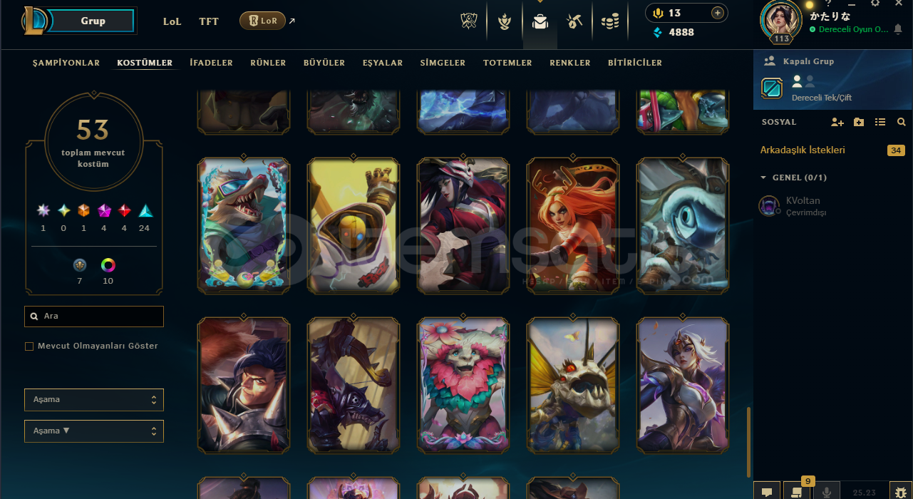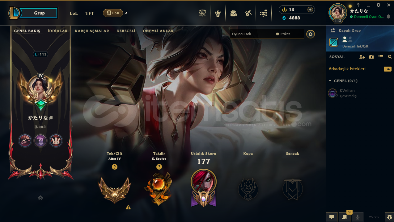 LOL 113 LVL GOLD AZ SKINLI HESAP TR