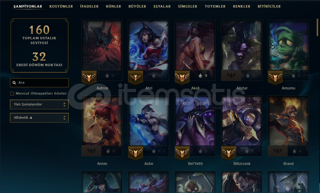 LoL 150+ level 100+ kostümlü hesap