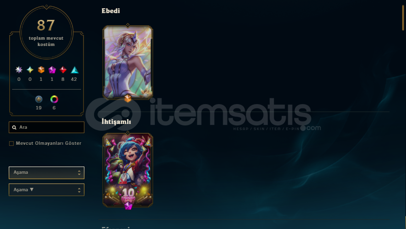 • 87 Kostüm (birçok popüler şampiyon için)