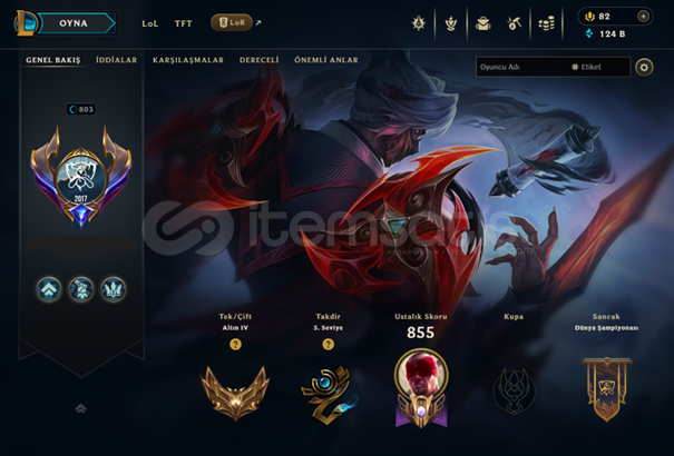 Merhaba, aktif olarak kullandığım League of Legends hesabımı artık vakit bulamadığım için satıyorum. Hesap tamamen bana aittir, hiçbir ban, uyarı veya sorun bulunmamaktadır.