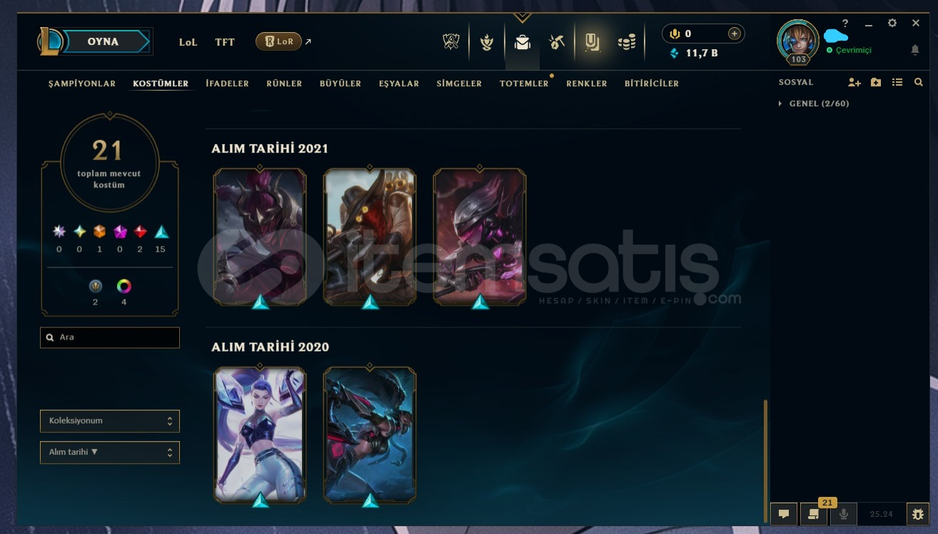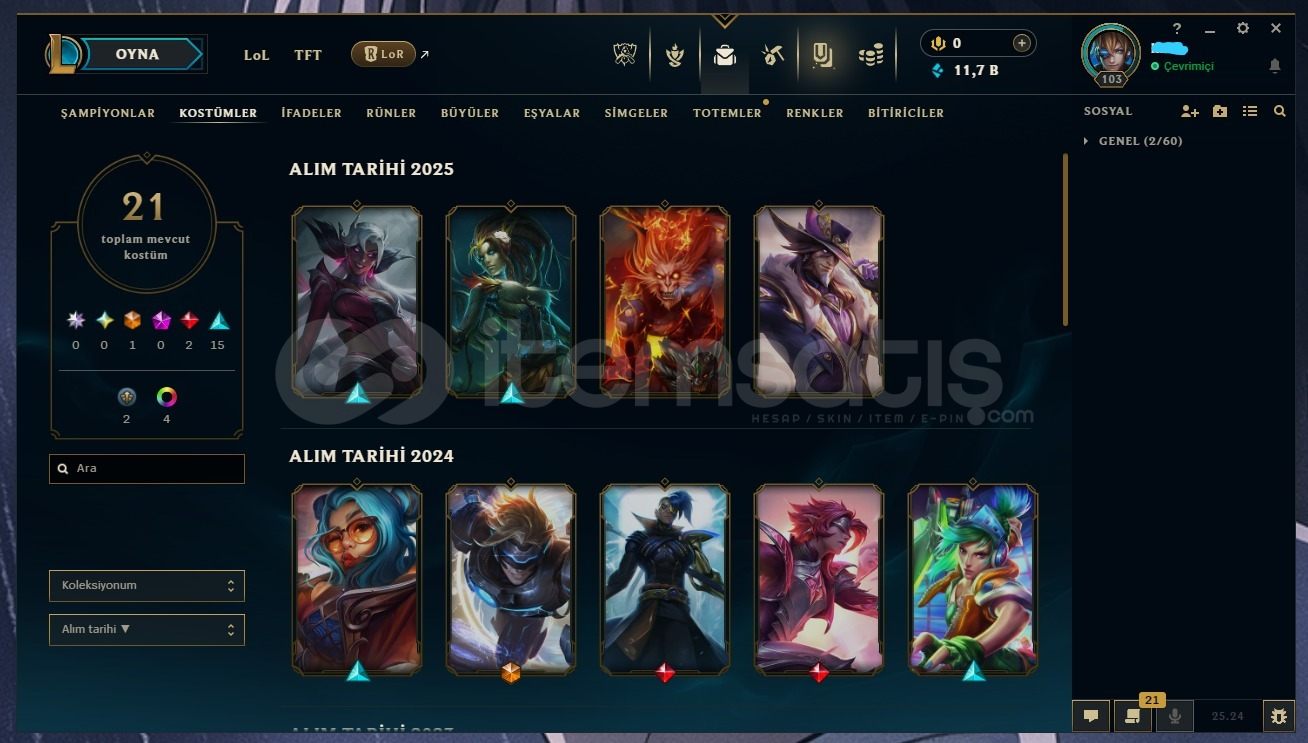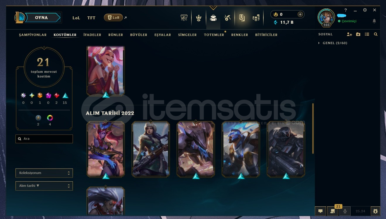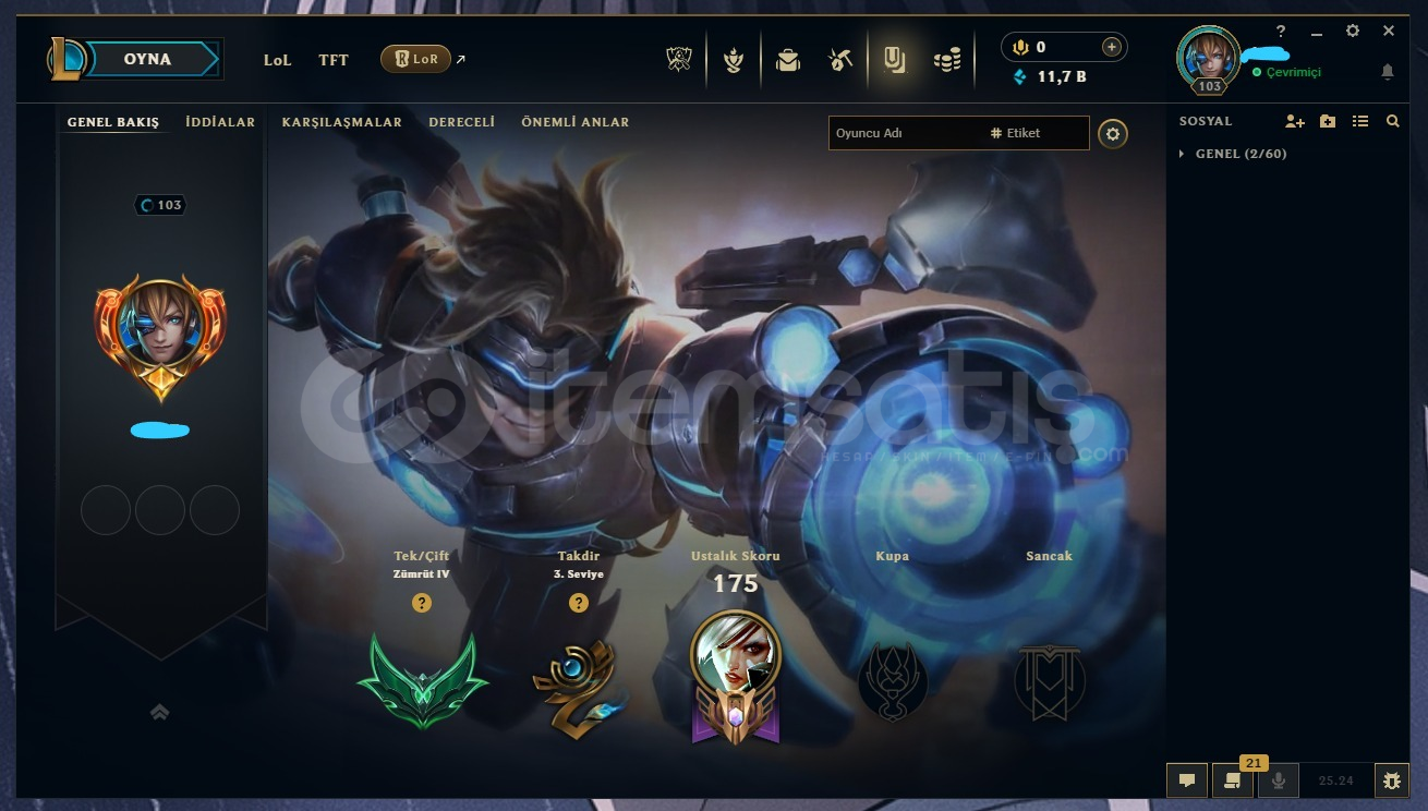 ⭐ LOL DOLU HESAP ZÜMRÜT 4 %60 WR 21 SKİN
