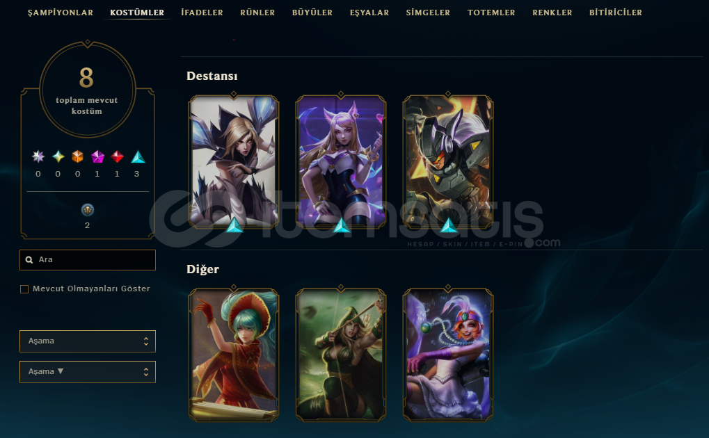 lol euw 23 lvl hesap 8 skin vardır skinler güzel ve değerlidir