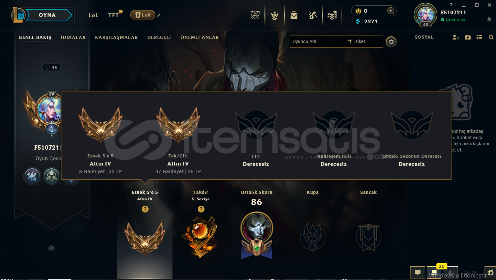 Herşey fotoğraflardaki gibidir eğer bir sorunuz olursa sorabilirsiniz.Hesap fresh hesapdır 32lp+ -18lp dir.Hızlıca lig kasabilirsiniz.