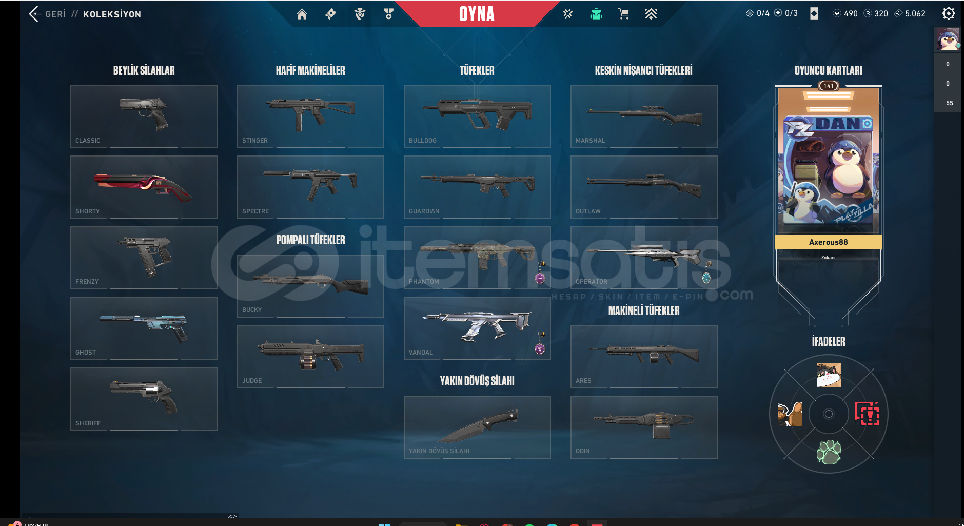 Oyunları bıraktığım için hesapları satıyorum.İki hesapta aynı mailde olduğu için ikisini beraber veriyorum.Fotoğraf ekleme az olduğu için iki hesabı da videoda gösterdim.Valorant Rank: Dia 1Vandal da Krunomi, Gaia ve Yitik bulunmaktadır.Operatörde Yıldız Belası bulunmaktadır.Phantomda Özel Harekat skini bulunmaktadır.Hesapta 490 VP vardır.