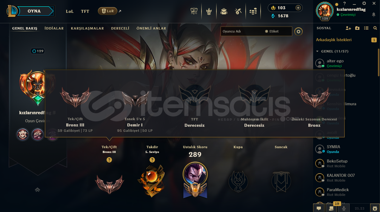 Hesap Tr Sunucusudur Hesabın Mail Değişimi Yapılıcaktır1678 Maviöz 108 Rp BulunmaktadirHesapta 79 İfade,110 Simge,13 Totem ve 11 Renk BulunurHesapta Sadece 36 Karakter Açık Degildir Geri Kalanalr AçıktırHesabın Tek Cift Rankı Bronz3 Hesabın Esnek Rankı Demir 1 dirHesabın Takdir Seviyesi 5. SeviyedirHesap 129 Levelin Sonundadir 130 a cok yakındır-------------------------------------------------...