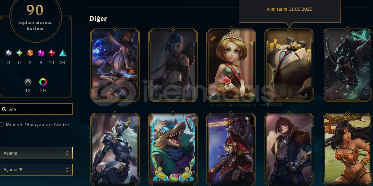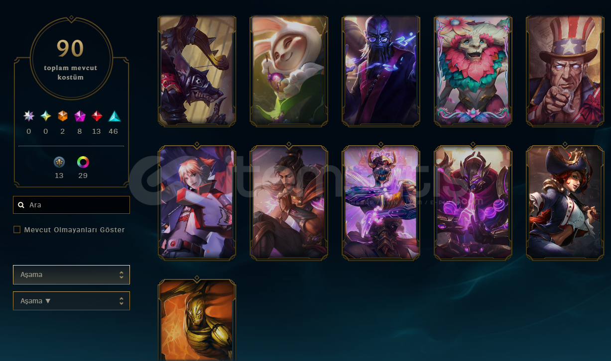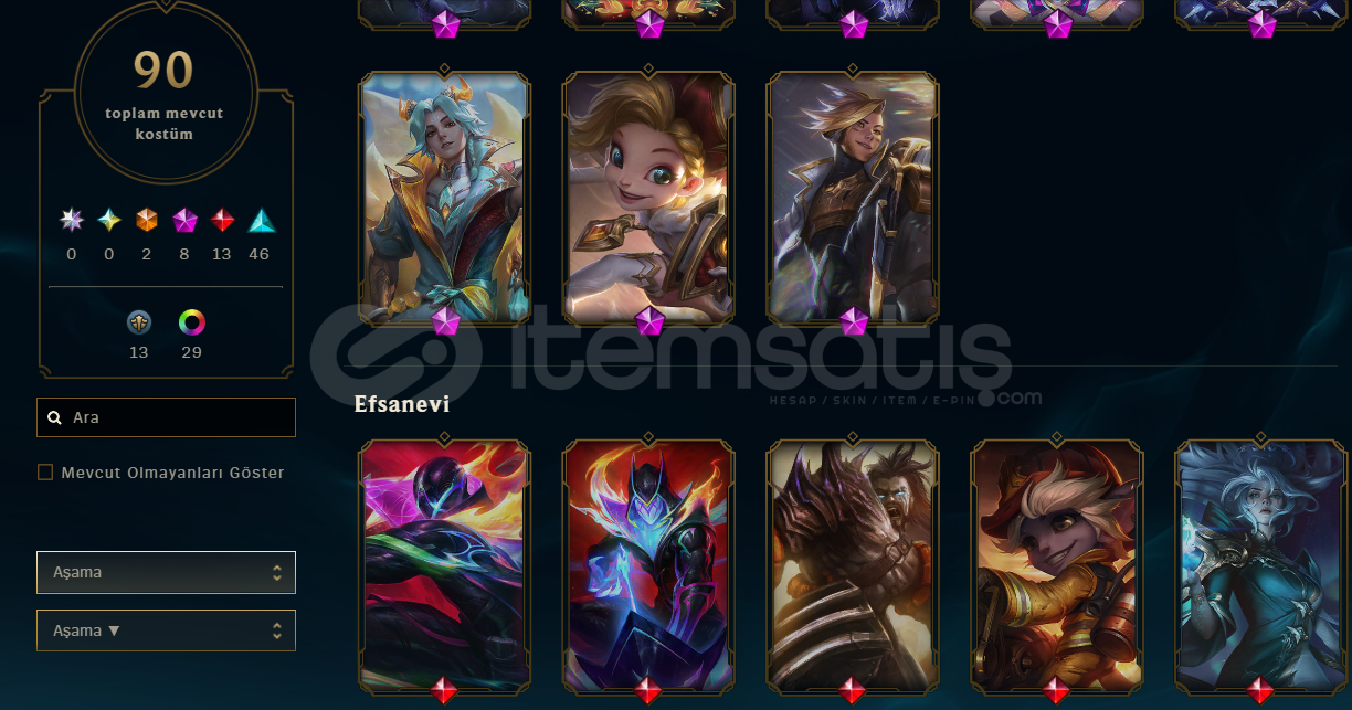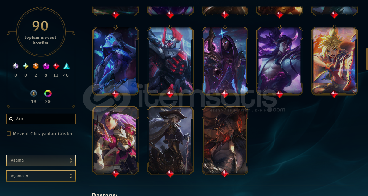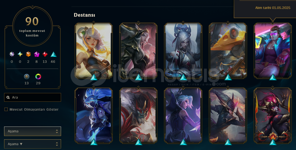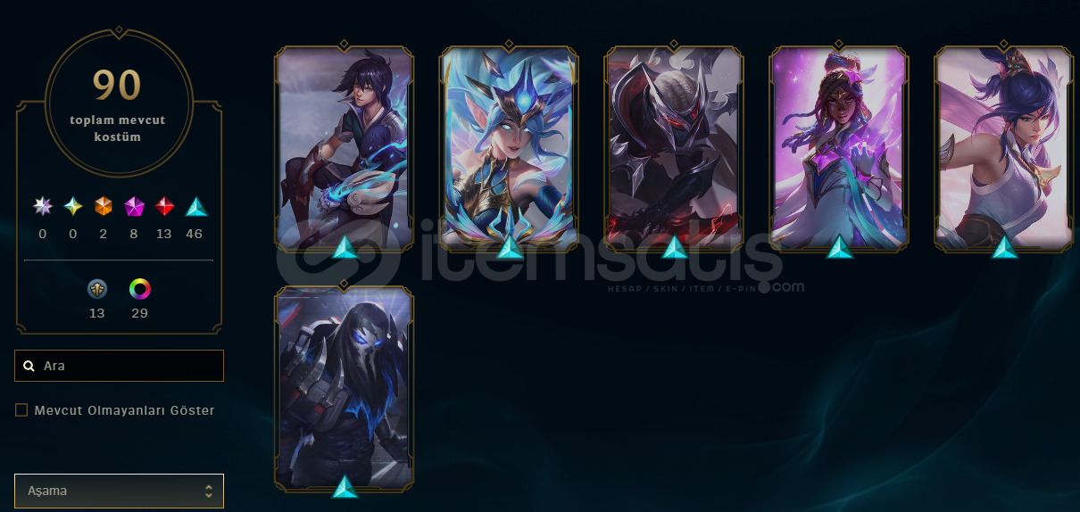 Hesap Demir 1Ban yokturSatın alım sırasında %100 güvence veriyorum isterseniz yüzyüze bile görüşebiliriz.Sırasıyla kostümler:Ebedi- Elementalist LUX- Ruh Dövüşçüsü SAMİRAİhtişamlı- Kül Şövalyesi PYKE- Mesai Sonrası Ruh Çiçeği Kaplıcası AHRİ- PRESTİJ Dehşet Gecesi ZERİ- PRESTİJ Ruh Çiçeği L...