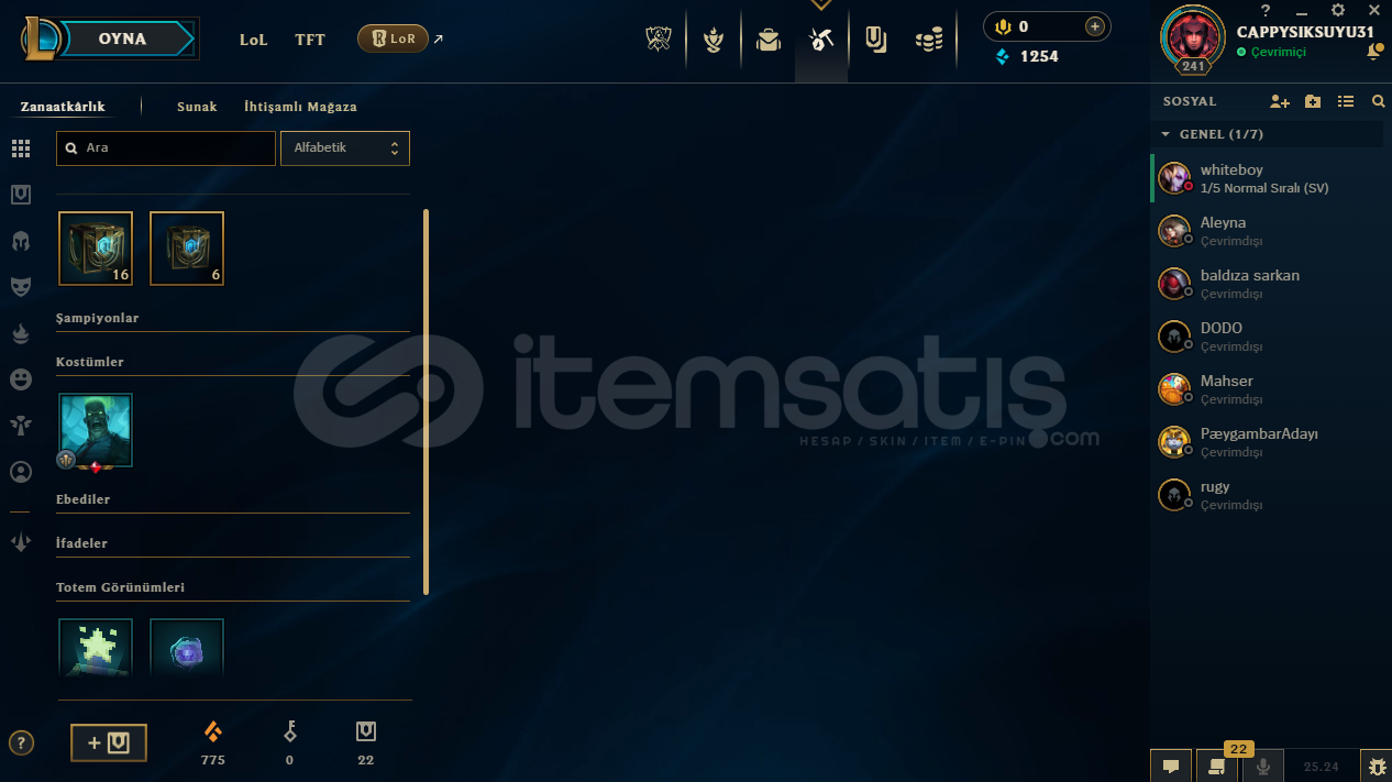 Merhabalar artik lol oynamadigim icin hesabimi satmaya karar verdim hesap ana hesabimdir mainlik hesaptir ilk mail malesef veremem aktifte kullandigim bir maildir fakat mail degisimi yapilacaktir