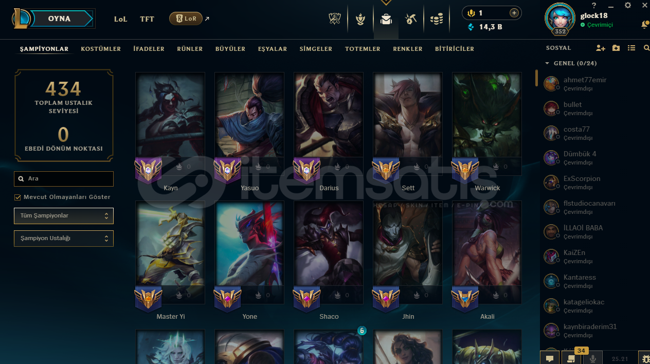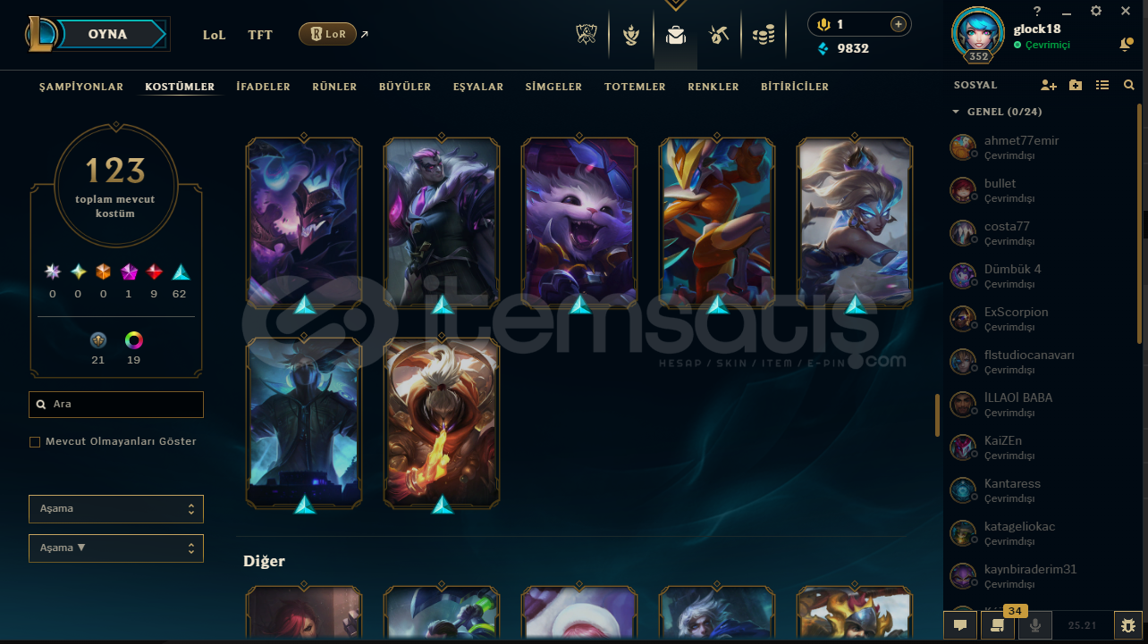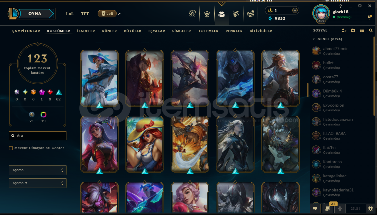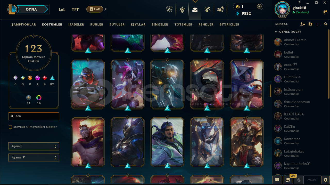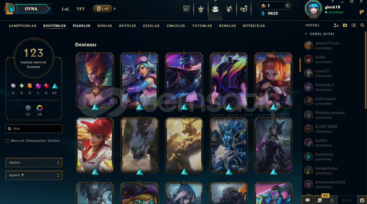LOL TR - 123 SKİN FULL HERO 352 LVL HESAP