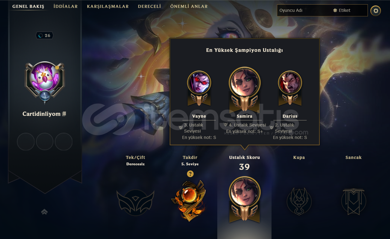 LOL TR 26 LVL HESAP 5.SEVİYE TAKDİR 18 KOSTÜM