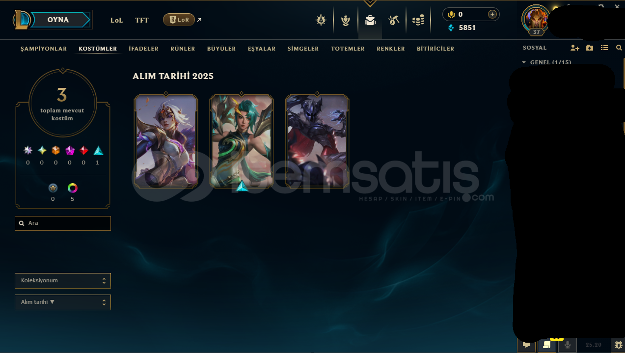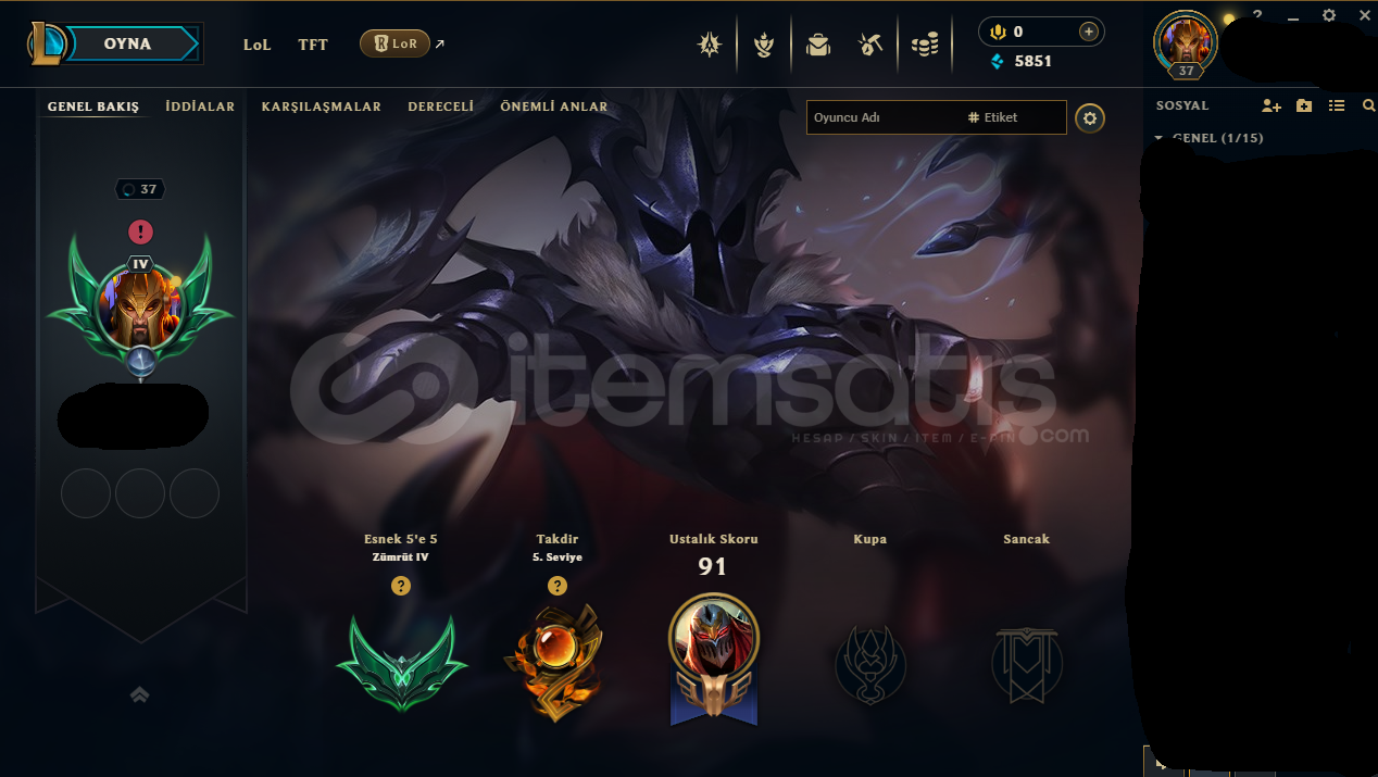 LoL TR | 37 SEVIYE | ZUMRUT 4 FLEX | 3 KOSTUM |