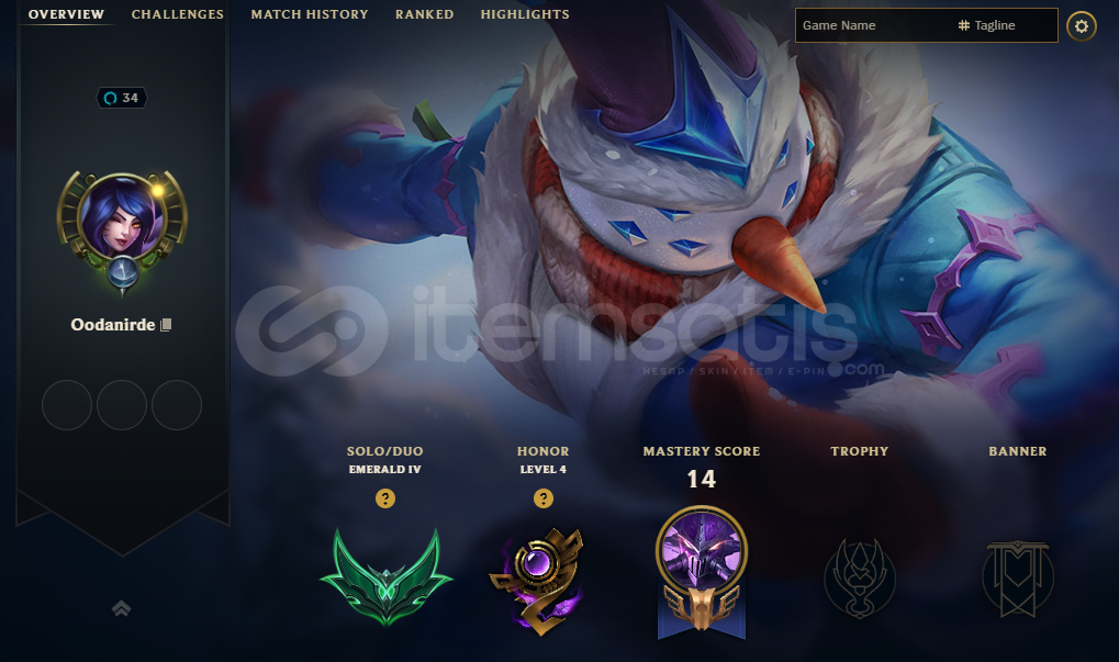 Lol türkiye sunucusunda zümrüt 4 80 wr (30 lp alıp 10 kaybediyor)Takdir seviyesi 454K Mavi ÖzProject YiSnow Man YiNot: Hesabın mailini üzerinize alabilirsiniz