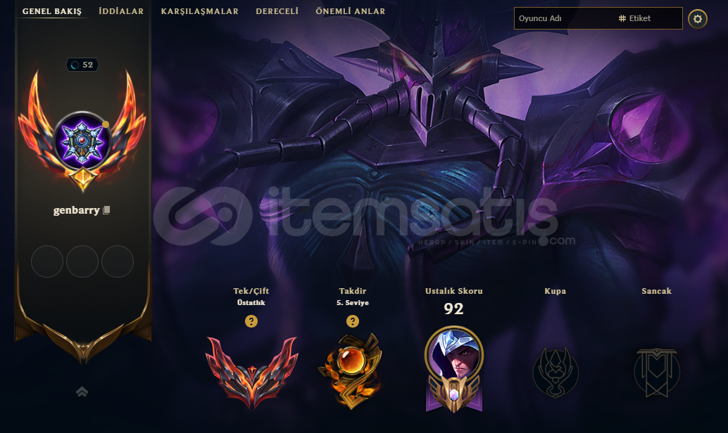 LOL TR GRANDMASTER 400+ LP 60 WR HESAP