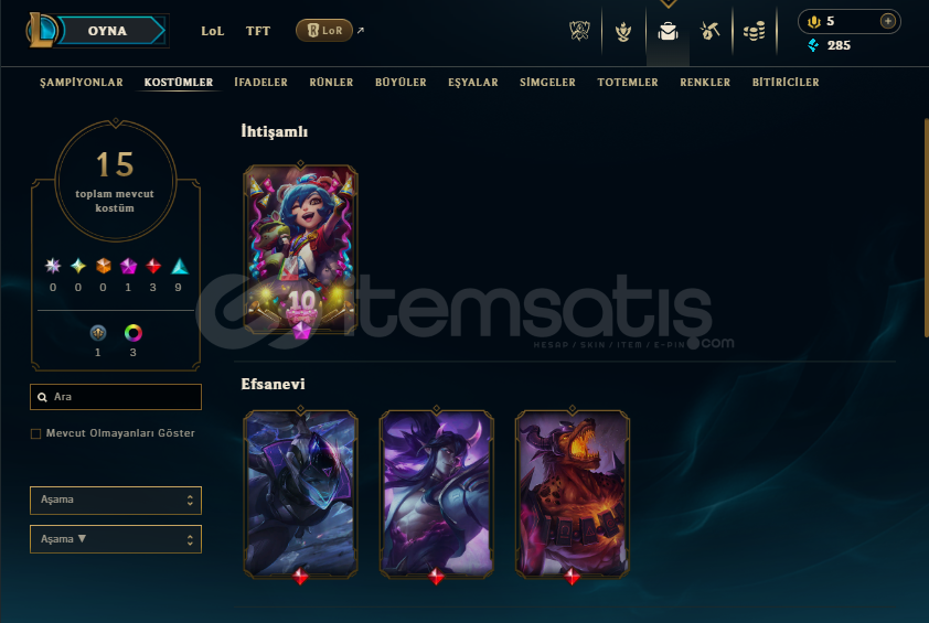 LoL TR Handmede 49 level 15 skin ölü fiyata