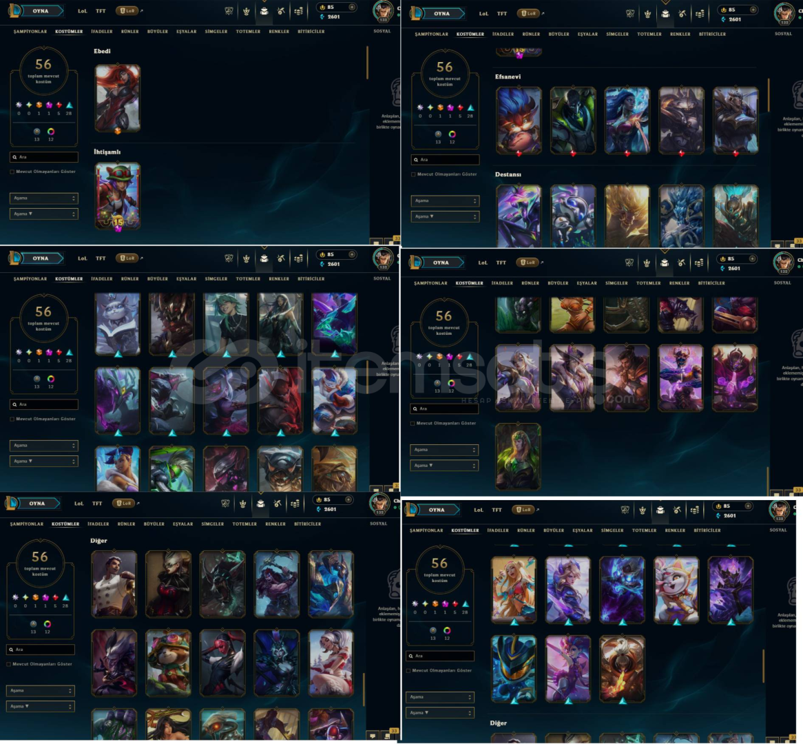 132 lvl hesap , 56 adet kostüm ve bolca kristal , Tek Çift gold 3, esnek gold 3 , +25 LP