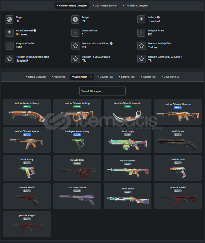 aynı hesaptadır skinler görsellerde mevcuttur.
