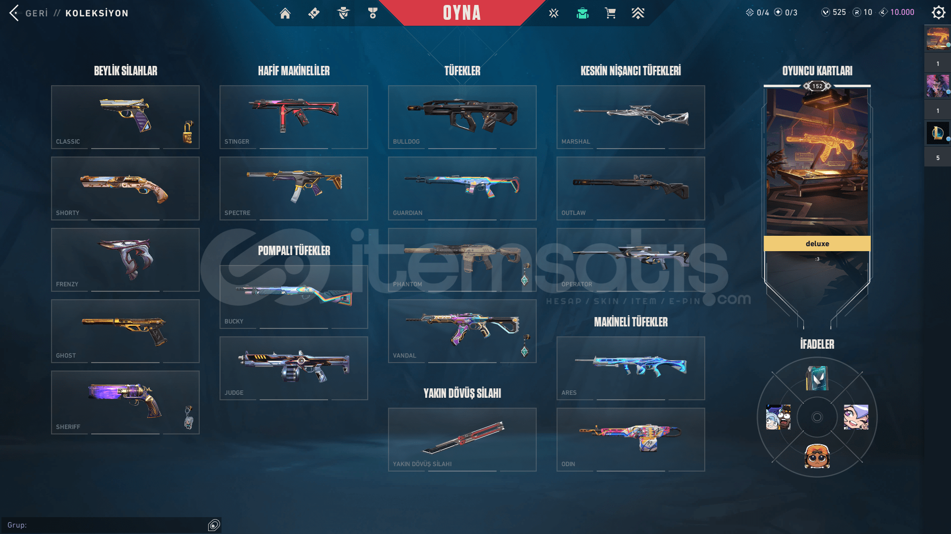 Hesap Dop doludur.Çalıştığım için oynamaya zamanım yok. Hesap derecesizdir. Hem valorant hemde Lol hesabı mevcuttur. Lol hesabında da sağlam kostümleŞu anda hesabın güncel skinlerin değeri 25k yapıyor. 4 Battlepas var ve silah skinleri içinde yetmediği durumlarda radyanit alındı toplam hesap değeri 35k. Lol hesabına da ortalama o şekilde bir harcama yapıldı. Ful...