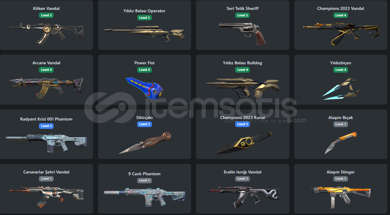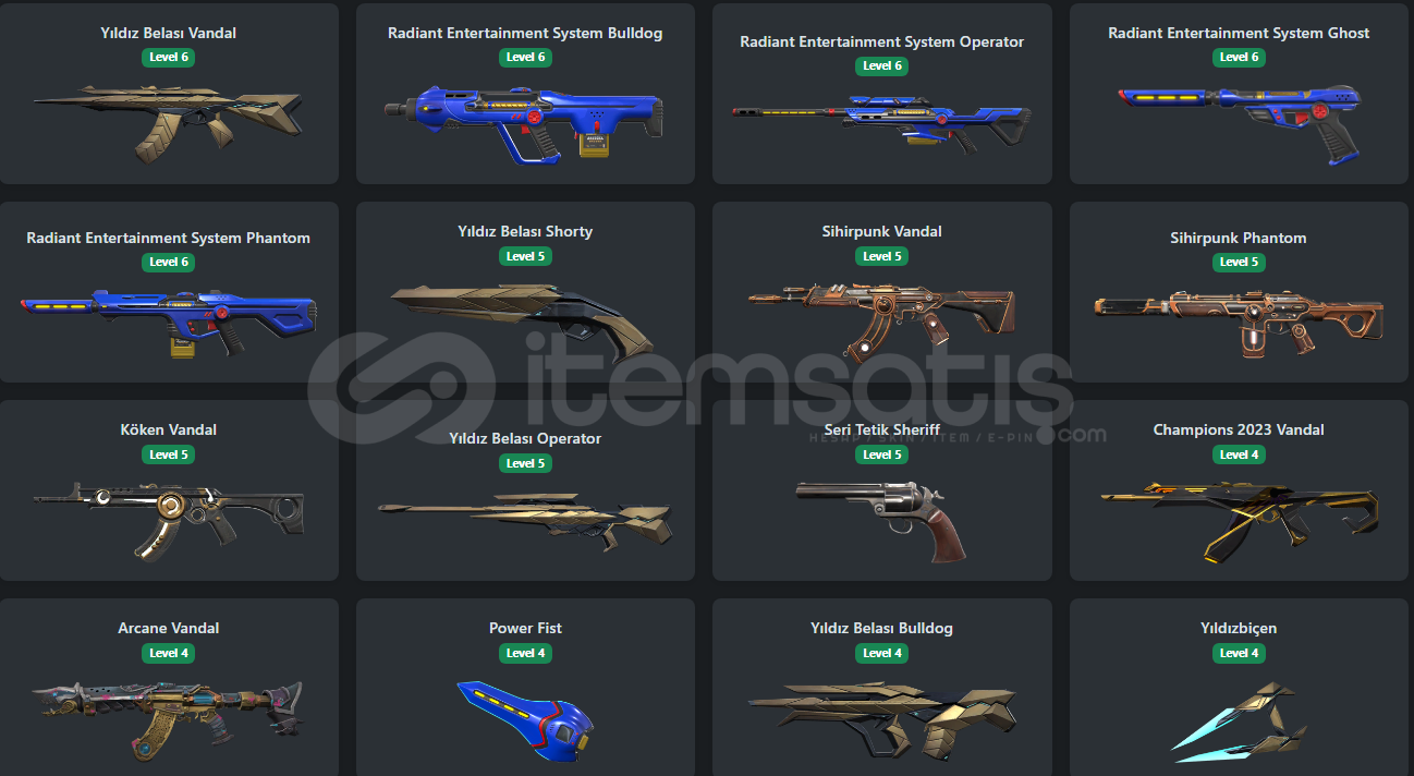 tek tek aldığım skinlerde -- seri tetik sheriff - arcane vandal - köken vandal - radyant krizi 001 phantom